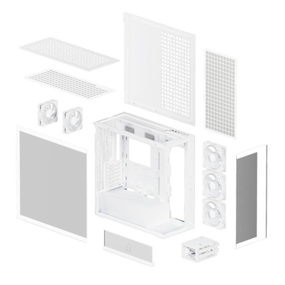 Зовнішній дизайн корпусу привертає увагу завдяки елегантності білого кольору, у поєднанні з великою прозорою бічною панеллю, що дозволяє демонструвати ваші компоненти, а також робити збірку візуально привабливою. Це стане особливо актуальним, якщо ви фанат RGB-підсвітки або маєте інші естетичні акценти на своїй системі.