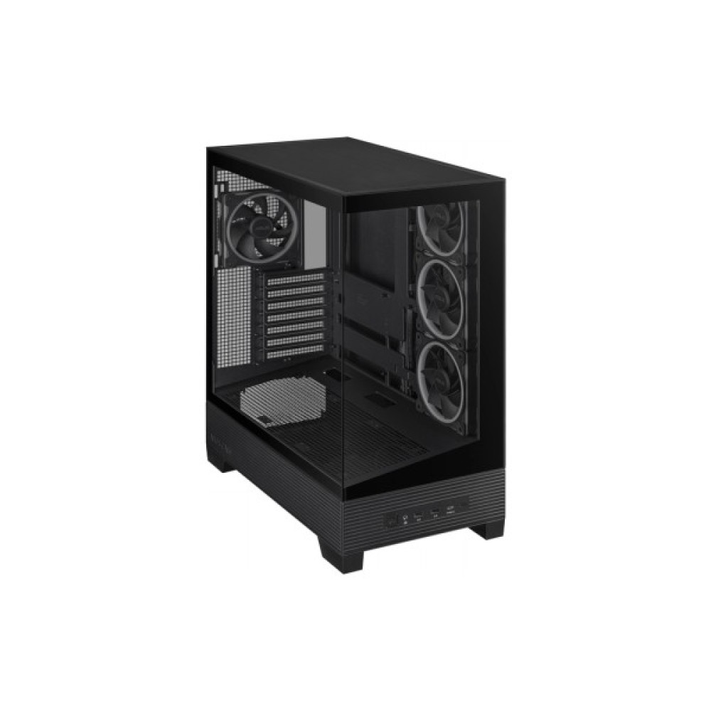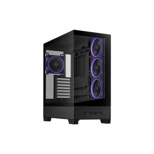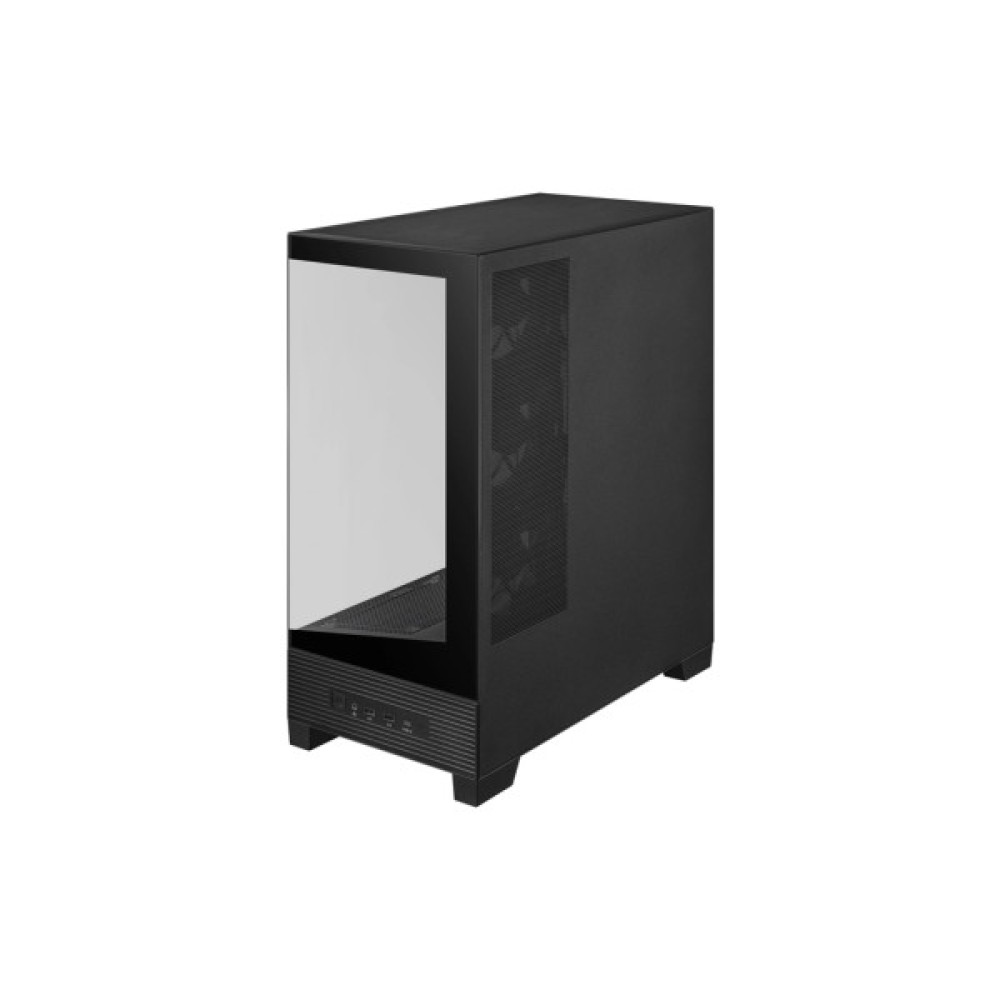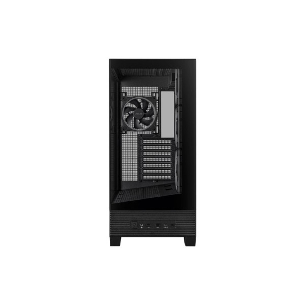 Завдяки загартованим скляним панелям на передній та боковій частинах, ви зможете милуватися внутрішністю вашої системи у всій її технологічній досконалості. Прозора передня панель підкреслює елегантний чорний дизайн корпусу, точно передаючи дух лаконічної розкоші та інновацій.