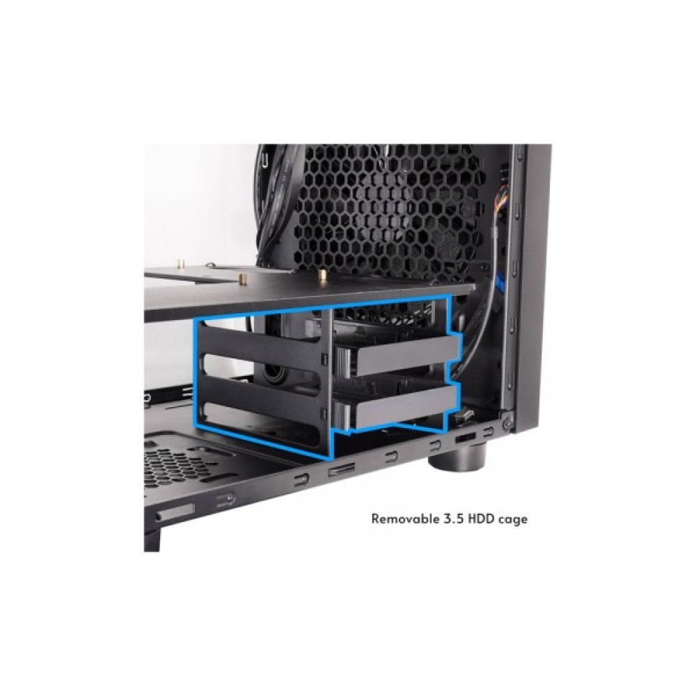 Однією з найпомітніших переваг моделі є сумісність з відеокартами довжиною до 335 мм, що дозволяє встановлювати навіть найпотужніші рішення для обробки графіки. Крім того, передбачено два відсіки для 3.5" HDD і два для 2.5" SSD, завдяки чому ви можете легко налаштувати систему з необхідною кількістю місця для зберігання даних.