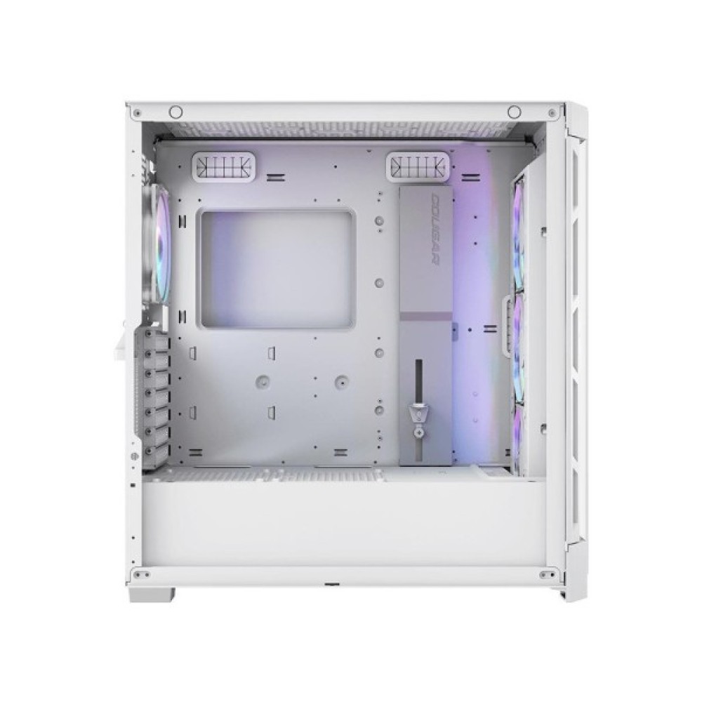 На вершині своїх конкурентів, Cougar Duoface Pro RGB дозволяє встановити до дев’яти вентиляторів для гарантії оптимальної прохолоди компонентів. В корпусі встановлено чотири 120-мм вентилятори з ARGB підсвічуванням для ефективного розподілу повітря і привабливого зовнішнього вигляду. Є підтримка рідинного охолодження з можливістю встановлення радіаторів розміром до 360 мм. Завдяки наявності пилових фільтрів, система лишається чистою, а ваші компоненти — захищеними від непотрібного накопичення пилу.