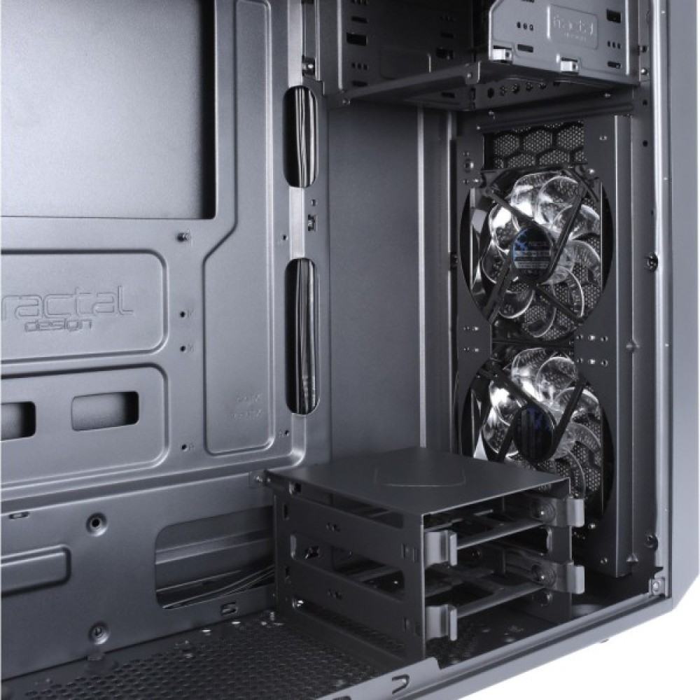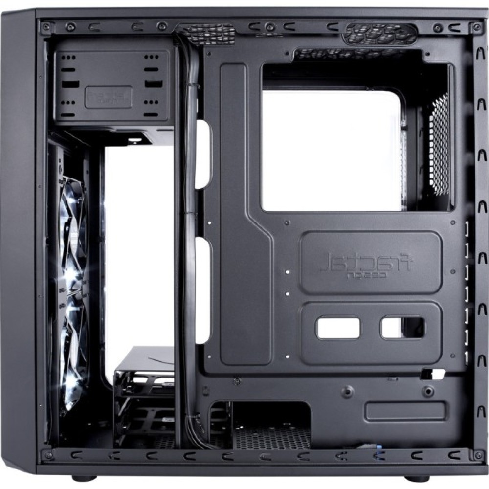 Особливістю цього корпусу є наявність великого вікна на бічній панелі, що дозволяє продемонструвати ваші компоненти та підсвічування. Встановлені вентилятори Fractal Design серії Silent LL забезпечують тиху та ефективну роботу з білими світлодіодами, що додають системі стильного вигляду. Окрім двох 120-мм вентиляторів, корпус дозволяє встановити додаткові вентилятори на верхній, задній та нижній частинах, створюючи потужний і стабільний повітряний потік.