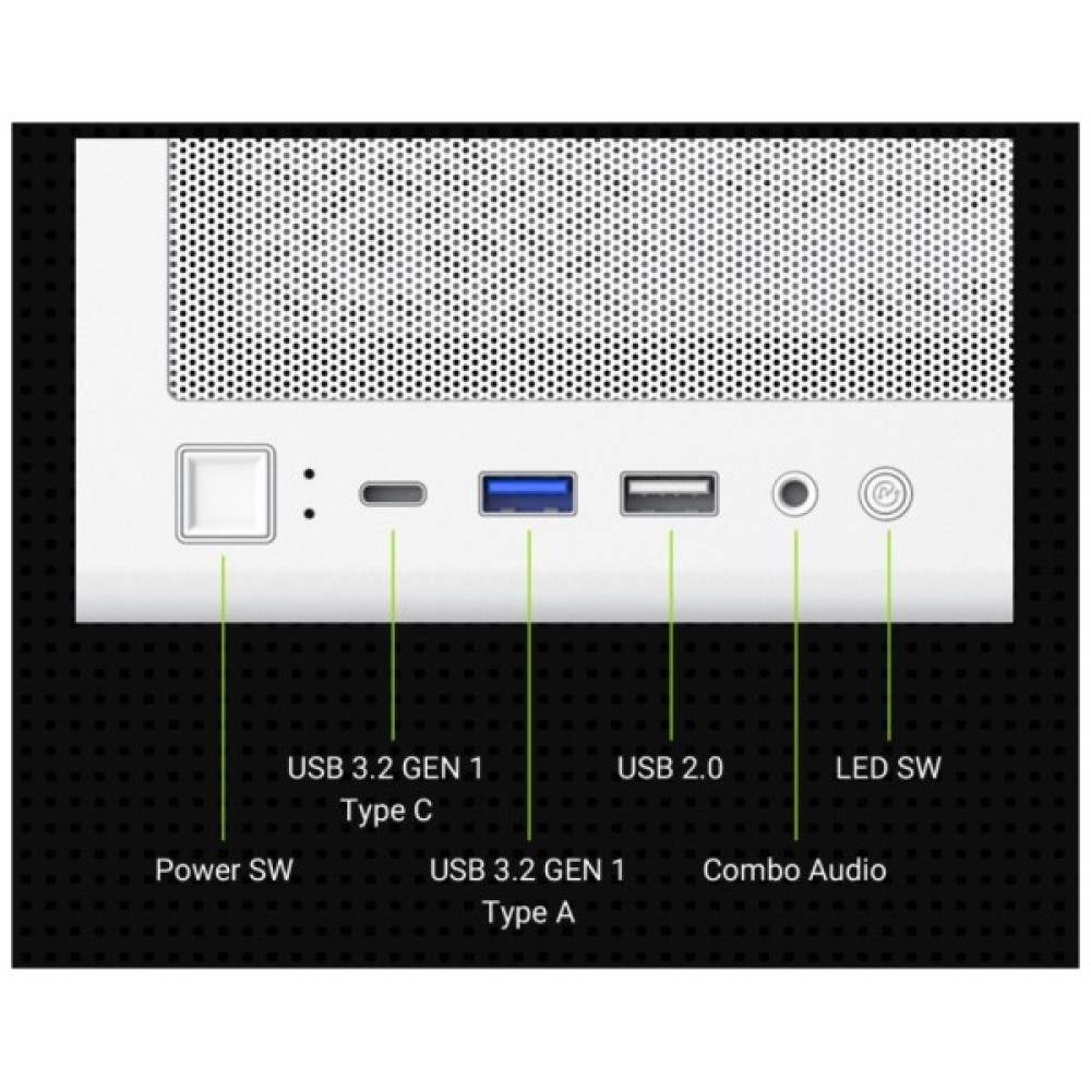 На сучасній передній панелі введення/виведення представлено широкий спектр інтерфейсів, що включають порт USB Type-C, USB 3.2, USB 2.0, а також комбіновані аудіороз'єми. Це дозволяє безперешкодно підключати необхідні периферійні пристрої та аксесуари, не турбуючися про швидкість передачі даних або якість аудіосигналу.