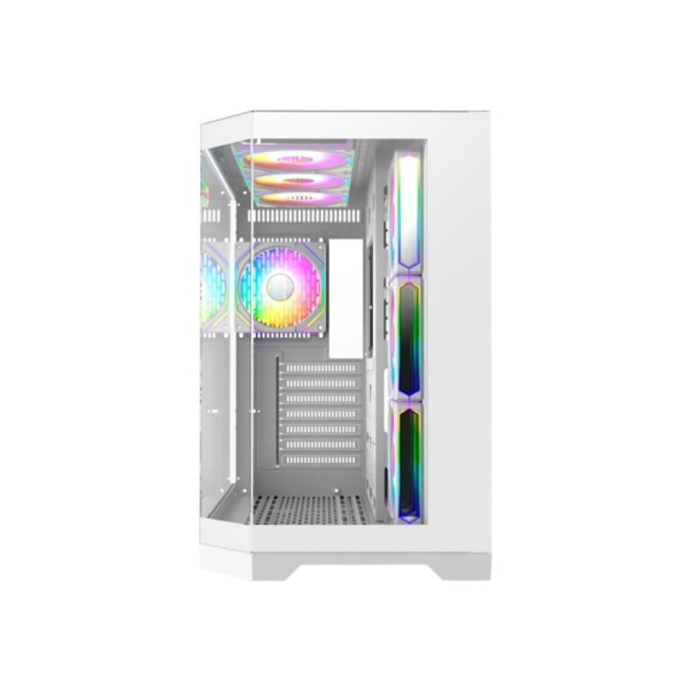 Одныєю з головних переваг цього корпусу є його система охолодження. З шістьма попередньо встановленими 120 мм вентиляторами з ARGB підсвічуванням, Gamemax HYPE-A White створює оптимальні умови для підтримки прохолоди у вашій системі навіть при високих навантаженнях. Додаткові можливості охолодження включають місця для встановлення вентиляторів ззаду та знизу, що дозволяє збільшити ефективність повітряного потоку. Для тих, хто віддає перевагу рідинному охолодженню, корпус підтримує встановлення радіаторів до 360 мм.