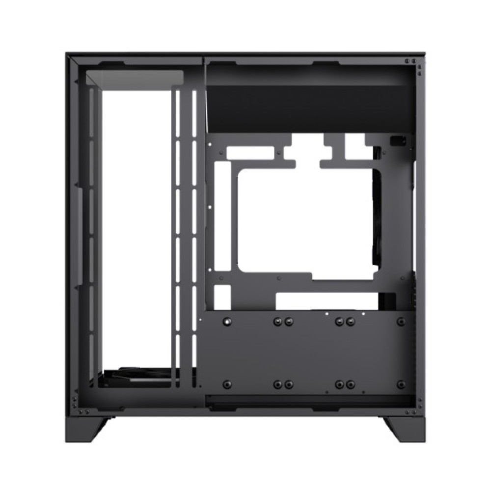 Відчуйте справжню насолоду від стилю з Gamemax Infinity Pro BK, який вирізняється витонченим дизайном із використанням трьох панелей із загартованого скла. Ці прозорі панелі надають бездоганний огляд внутрішніх компонентів, дозволяючи вам повною мірою насолоджуватися вишуканим RGB-освітленням. Воно додає вашому ПК яскравої атмосфери та перетворює його на яскравий акцент будь-якого робочого чи ігрового простору. Прозора передня панель додає йому шарму, перетворюючи ваше обладнання на справжній центр уваги.