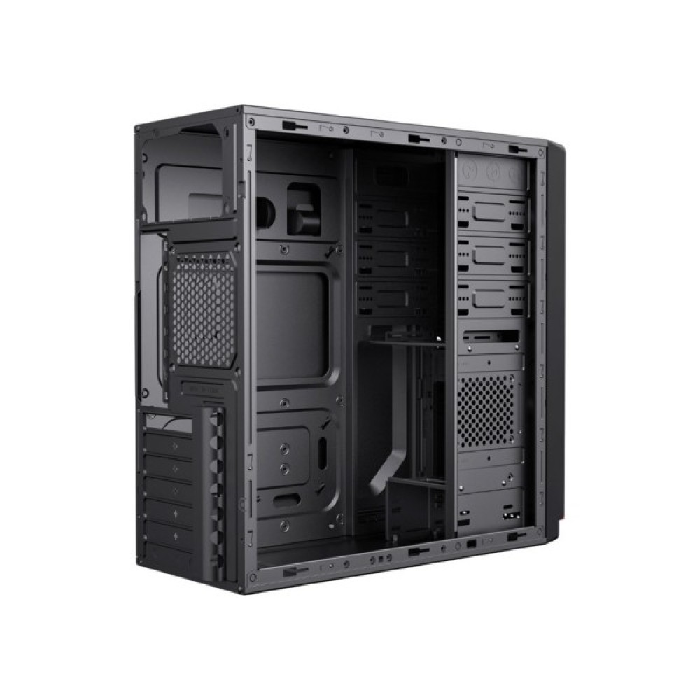 Корпус пропонує три зовнішні відсіки 5.25", що дозволяє встановлювати додаткові оптичні приводи чи інші пристрої. Для зберігання даних передбачено чотири внутрішні відсіки 3.5" і два відсіки 2.5", що забезпечують можливість налаштування великого обсягу сховища.