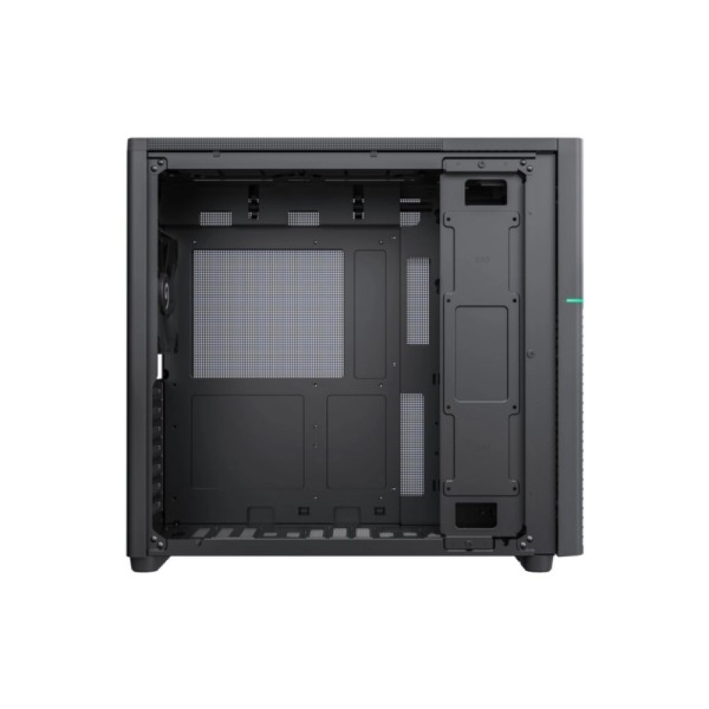 Прихильники ефективного охолодження будуть задоволені унікальними функціями системи вентиляції. На борту – два 120-мм вентилятори, які вже входять у комплект. Для тих, хто потребує більшого, є місця для додаткових вентиляторів у верхній частині (2x12/14 см) та на дні (3x12, 2x14 см). Для покращення охолодження компонентів корпус підтримує рідинне охолодження з опціями встановлення радіаторів до 240 мм як знизу, так і зверху корпусу.