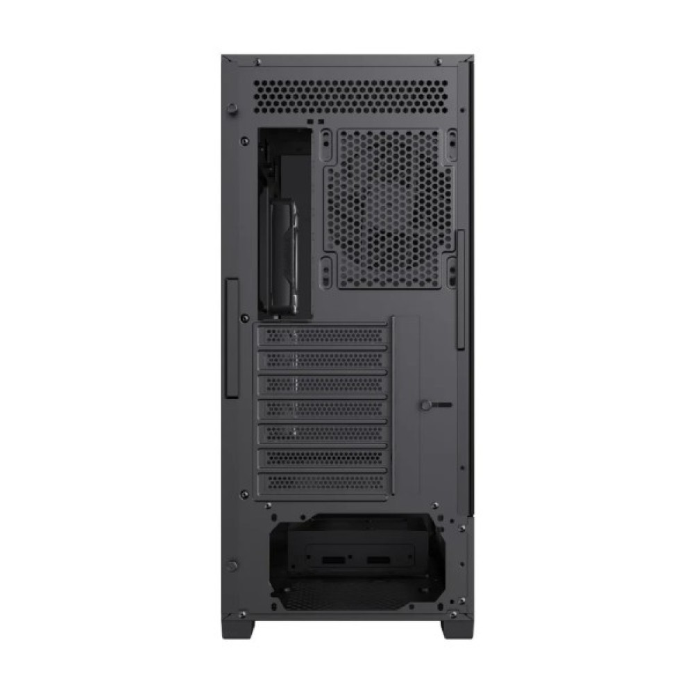 Головною особливістю корпусу є панорамне загартоване скло з кутом огляду 270°, яке дозволяє насолоджуватися видом вашого технічного шедевра. Це рішення не лише підкреслює стильний зовнішній вигляд системи, а й забезпечує чудову вентиляцію з використанням попередньо встановлених трех вентиляторів ARGB PWM. Їхні підсвічення створюють яскраві світлові ефекти, що додатково підсилюють враження.