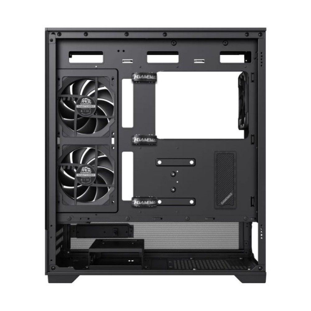 Gamemax VISTA 2 AB підтримує подвійне повітряне та рідинне охолодження, забезпечуючи стабільну роботу потужних компонентів. Ви з легкістю зможете встановити довгу відеокарту до 410 мм і процесорний кулер заввишки до 165 мм. Завдяки оптимізованому керуванню кабелями на задній панелі, всередині корпусу завжди пануватиме порядок, що позитивно відобразиться на повітряному потоці.