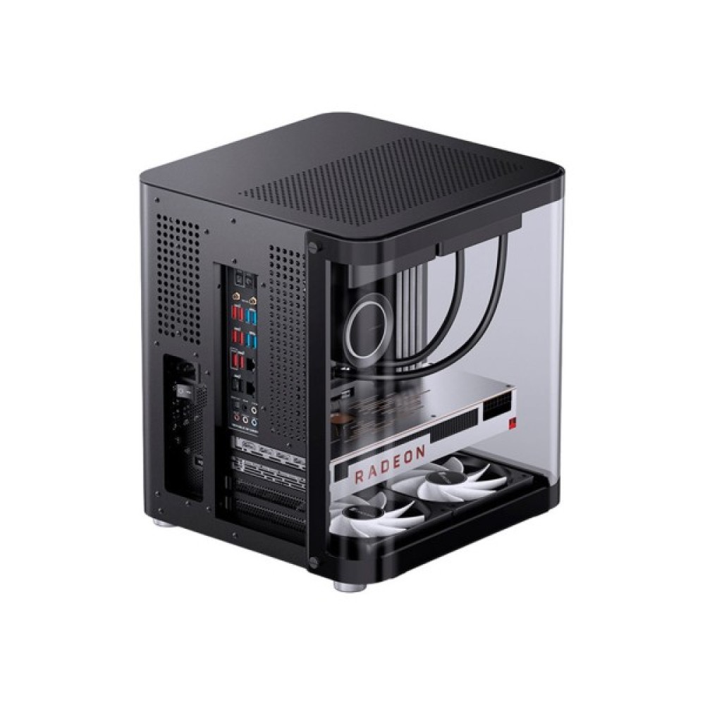 Його типорозмір Cube Case дозволяє оптимально використати простір, зберігаючи при цьому всі особливості сучасних геймерських корпусів. Навіть за відносно компактних розмірів — 345 х 310 х 299 мм — JONSBO TK-1 дозволяє встановлювати повнорозмірні материнські плати формату ATX, що розширює можливості для вибору апаратного забезпечення.