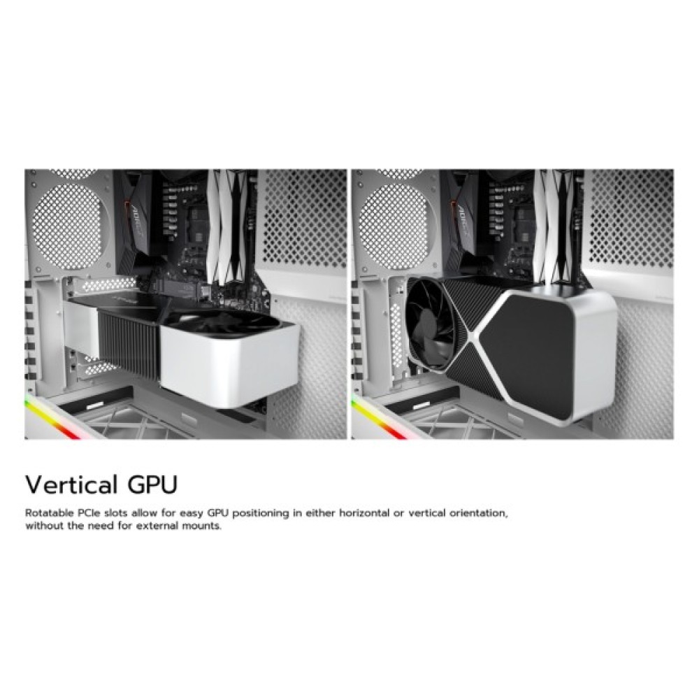 Стильна підсвітка корпусу та прозорі панелі – це справжня родзинка для шанувальників кастомізації. Бічне вікно і прозора передня панель не тільки демонструють внутрішню архітектуру системи, але й перетворюють ваш ПК на яскравий елемент дизайну. Крім того, для додаткового комфорту, корпус обладнаний зовнішніми роз'ємами, що забезпечують швидкий доступ до основних підключень, включаючи 2 x USB 3.0, 1 x USB Type-C та 2 Audio виходи.