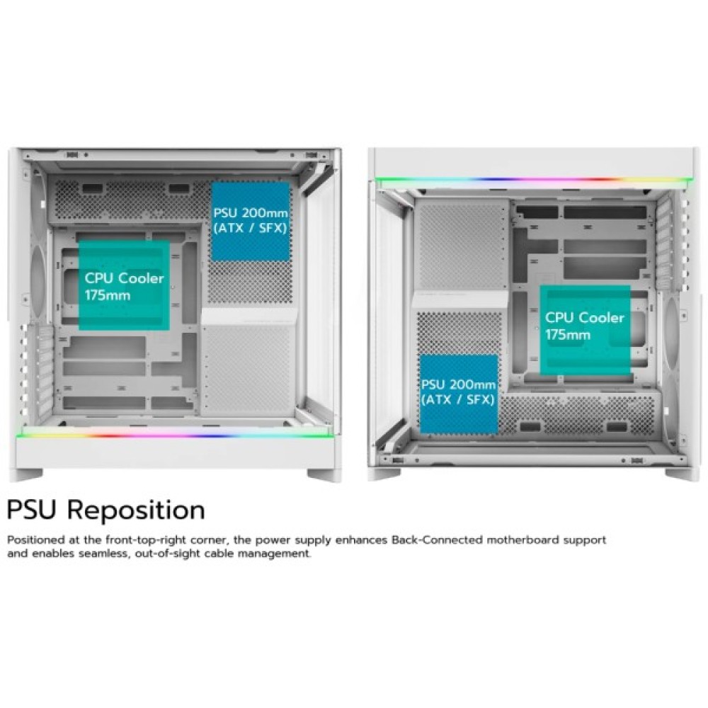 MONTECH HS02 (W) — це не просто корпус, а справжня платформа для вашої комп'ютерної системи. Він вражає не лише витонченим дизайном, але й своїми функціональними можливостями. Використовуйте цей корпус для досягнення нових висот у геймінгу, творчості або будь-яких інших проектах. Завдяки його гнучкості та інноваційності, ви завжди будете готові до модернізації і зустріти виклики майбутніх технологій. MONTECH HS02 – це ваш компаньйон у світі новітніх технологій, що гарантує стиль, продуктивність і надійність.