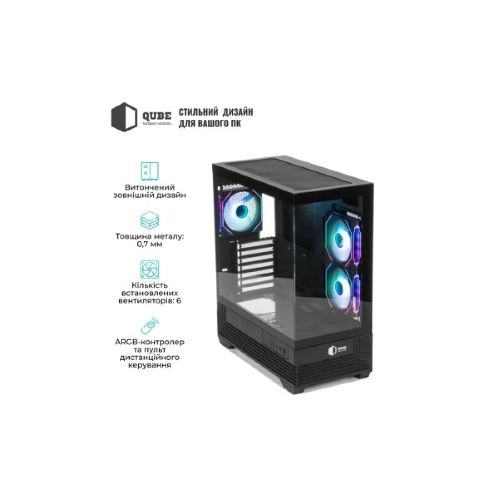 Корпус для ПК Qube FORT_GBNU3 - це інтеграція естетики і функціональності у високому стилі. Призначений для мультимедійних рішень, він втілює потужність і здатність до адаптації, неодмінно привертаючи увагу справжніх поціновувачів комп'ютерних технологій.