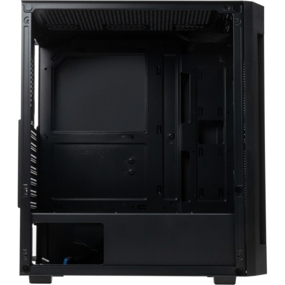 Геймерський корпус типорозміру Midi Tower має вертикальну установку, блок живлення не передбачений в комплекті. Корпус має 4 внутрішніх відсіків для розширення розмірами від 2.5 дюймів до 3.5 дюймів. Також є 7 слотів розширення. Охолодження здійснюється за допомогою 8 вентиляторів (опціонально), кожен - діаметром 12 см. Для зручності на корпусі розташовано чотири зовнішніх роз'єма, два USB 2.0, один USB 3.0, вхід для навушників і мікрофону.