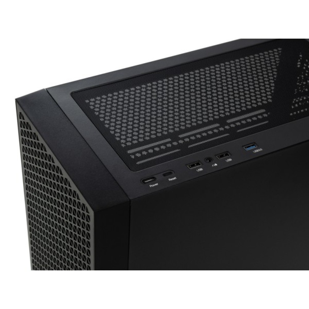 На передній панелі корпусу розташовані різноманітні зовнішні роз'єми, включаючи два порти USB 2.0, два порти USB 3.0 та роз'єми для аудіовходу та виводу. Це забезпечує зручний доступ до підключення периферійних пристроїв без необхідності додаткових адаптерів.