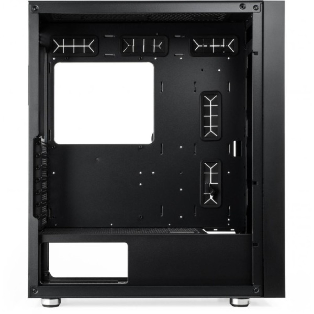 Особлива увага приділена ефективній вентиляції. У корпусі передбачені місця для встановлення до 8 вентиляторів: 2 знизу, 3 спереду, 2 зверху і ще один ззаду. Це дозволяє налаштувати найефективнішу систему охолодження, яка гарантує стабільну роботу компонентів вашого комп’ютера. Крім цього, наявність пилового фільтра важлива для підтримки чистоти і подовження терміну служби деталей. А для любителів рідинного охолодження корпус підтримує встановлення водяних систем.