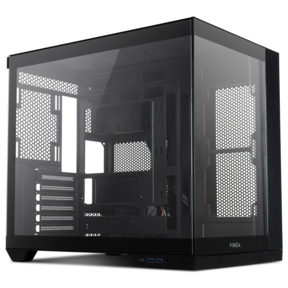 Чорний колір корпусу надає йому стриманого, професійного вигляду, який легко прилягає до будь-якого інтер'єру. Із габаритами 415 х 378 х 285 мм, Vinga Request поєднує компактність з можливостями розширення, дозволяючи його зручне розміщення як у просторих студіях, так і в компактних офісах.
