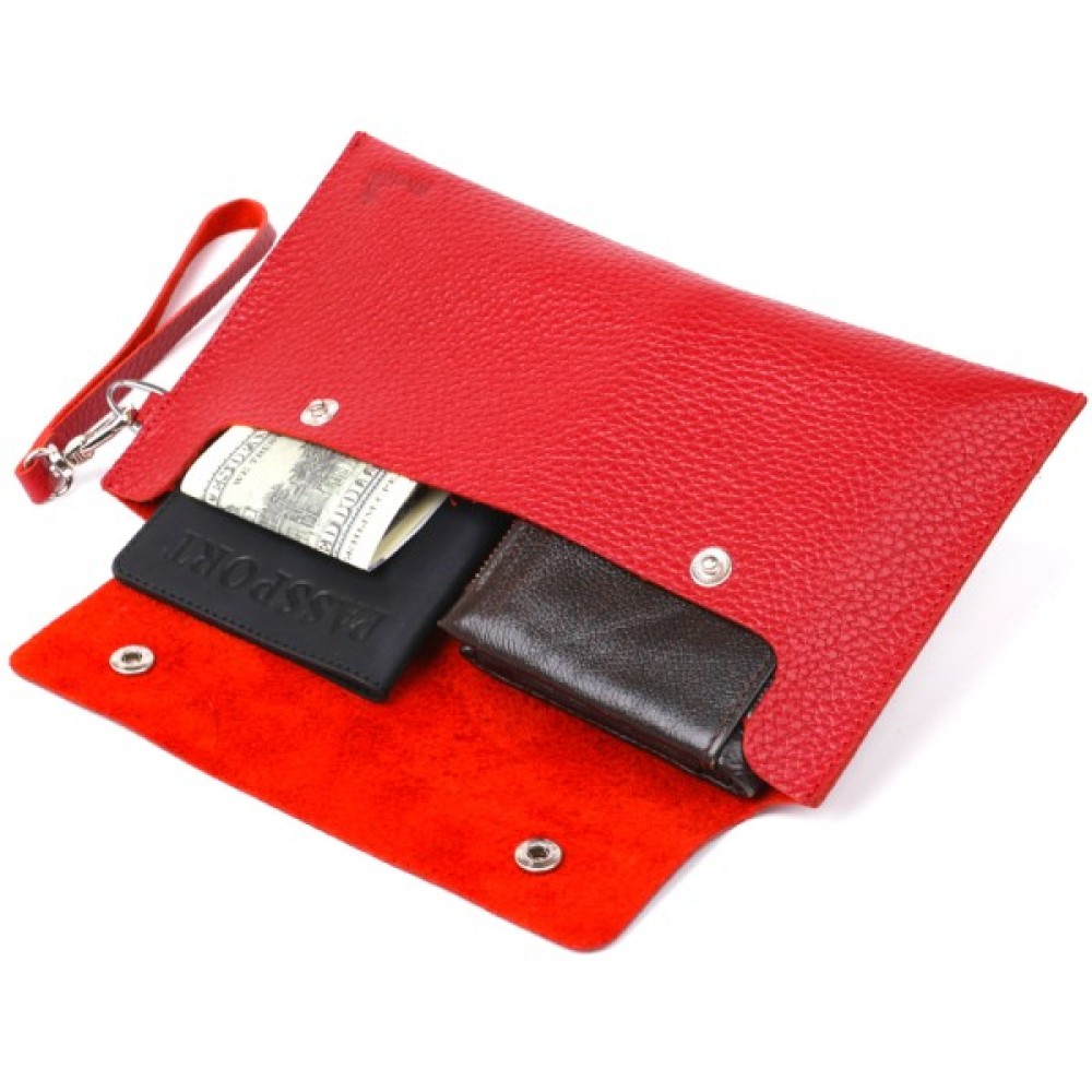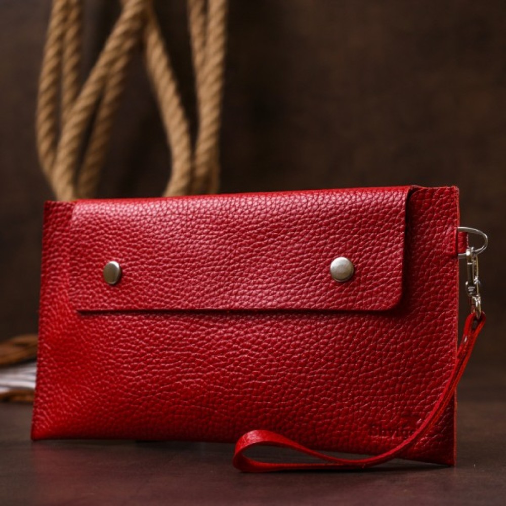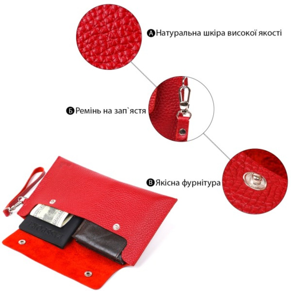 Чудовий і просто незамінний аксесуар, особливо у дорозі. Відмінно містить у собі всі цінні папери та документи. Матеріал виготовлення – натуральна шкіра, висока якість якої видно неозброєним оком. Закривається на клапан із кнопками. Колір виробу – червоний, фактура – крупно-зерниста, сама шкіра дуже м'яка та приємна на дотик.