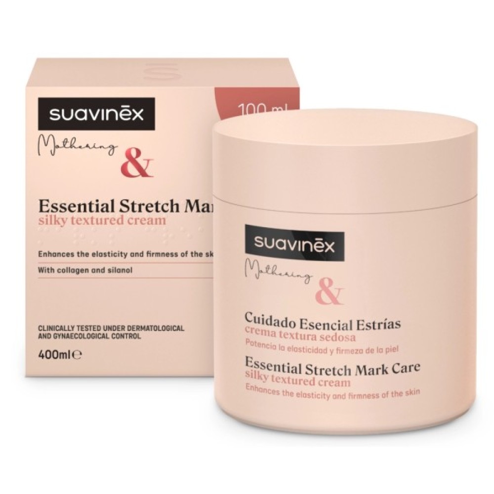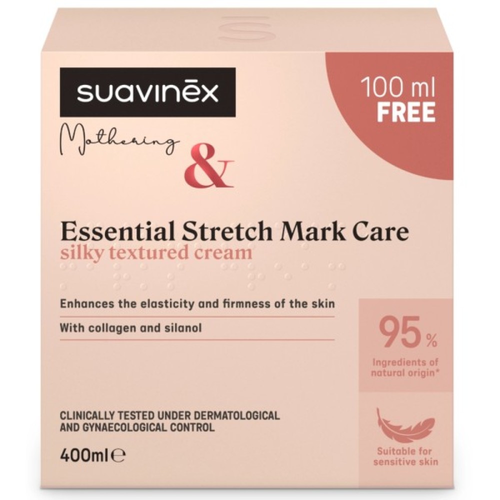 Крем від розтяжок Suavinex покращує еластичність шкіри та знижує ризик появи розтяжок під час і після вагітності.