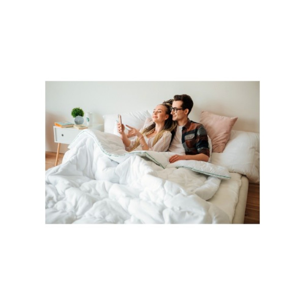 Антиалергійна ковдра HAND MADE колекції «Eco» виготовлена з антиалергенного бамбукового волокна й італійського мікросатину, до складу якого входить бавовна та поліестер, які надають ковдрі м'якості, легкості й простоті в догляді. Для виготовлення виробів із бамбукового волокна використовують 100% натуральний бамбук, який виготовлений механічним способом без застосування хімічних речовин.