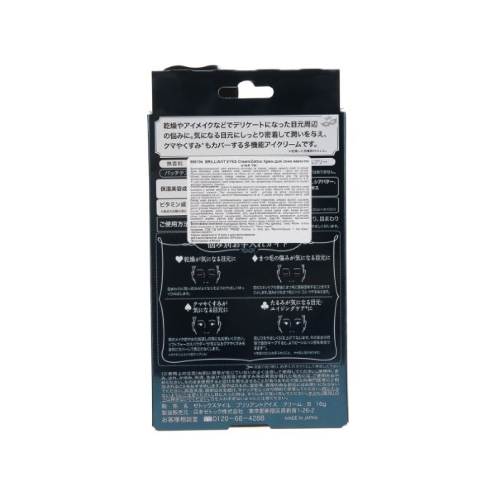 Уникнути подібних проблем можливо за допомогою інноваційного крему для шкіри навколо очей Brilliant Eyes Cream популярного японського бренда Zettoc. Цінні масла ши і макадамії живлять клітини, а екстракт мигдалю та вівсяних зерен нормалізує їх гідроліпідний баланс. Соєві ізофлавони активізують природний синтез колагену і еластину, які сприяють інтенсивним процесам регенерації і вирівнюють дрібні мімічні зморшки. Крем Zettoc Brilliant Eyes Cream не містить ароматизаторів, барвників, парабенів, мінеральних і тваринних жирів, він вмить всотується і слугує чудовою базою для подальшого мейкапу.