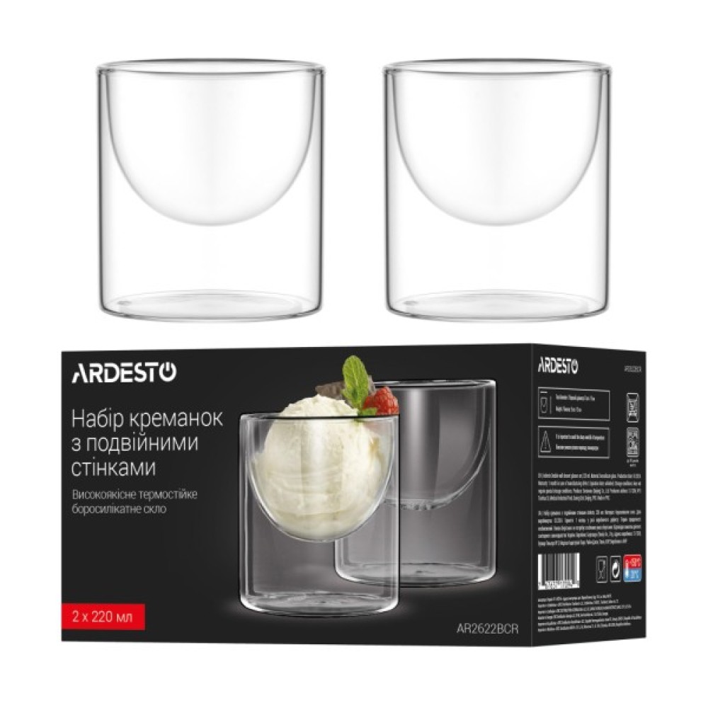 Креманки Ardesto з подвійними стінками – це насолода для поціновувачів естетики та практичності. Вони надзвичайно міцні та легкі, витримують температуру від -20 до +150 °C.