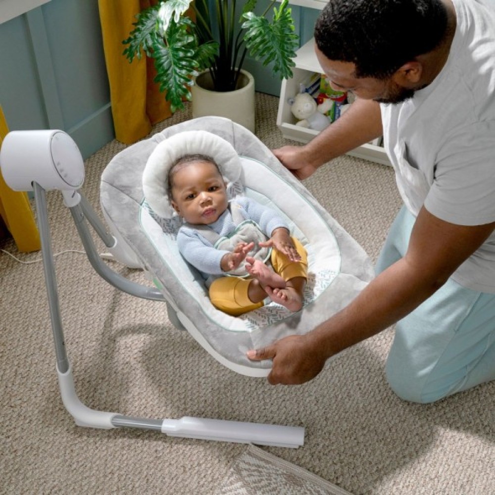 Крісло-гойдалка Ingenuity "AnyWay Sway-Spruce" з режимом вібрації та звуковими ефектами розроблено для дітей від народження і до досягнення ними ваги 9 кг.