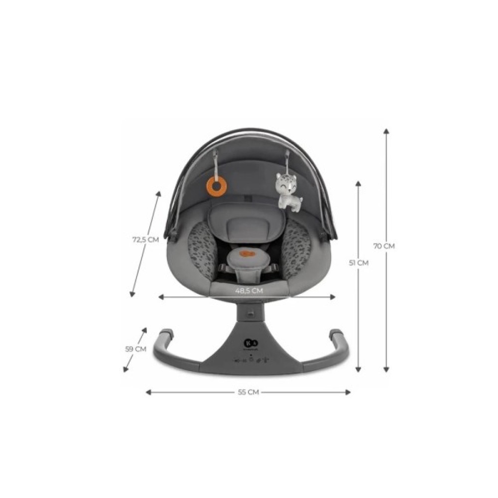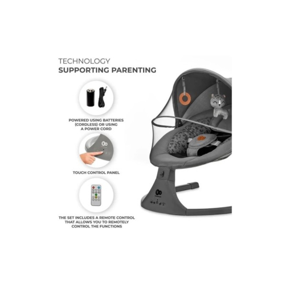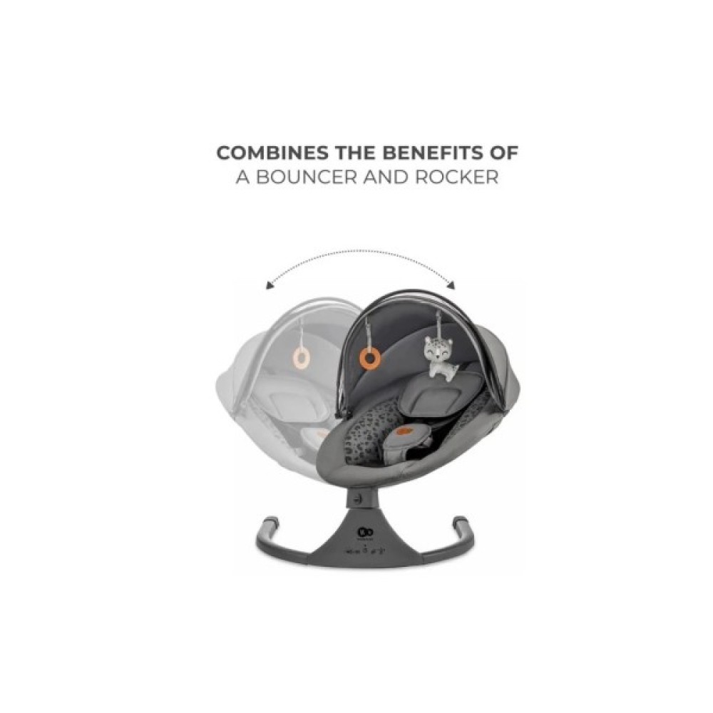 Гойдалка-гойдалка оснащена зручною панеллю керування, за допомогою якої можна встановити одну з п'яти швидкостей розгойдування, вибрати одну з 12 мелодій або встановити таймер (8, 15 або 30 хвилин).