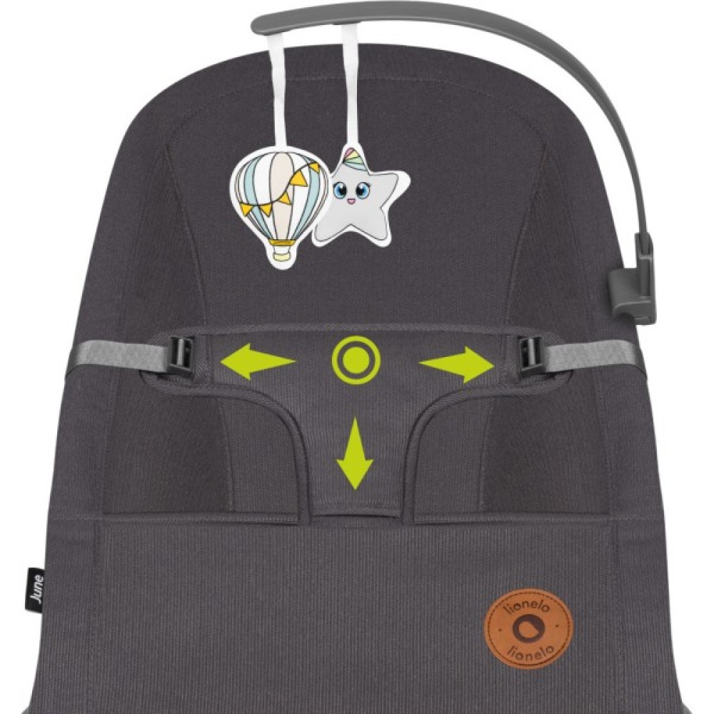 Ми створили шезлонг Lionelo June. Його можна використовувати дітям з першого дня життя до досягнення ними ваги 9 кг або моменту, коли вони почнуть самостійно сідати. Він імітує природний балансуючий рух погойдування, тож малюк почуватиметься майже як у батьківських обіймах. При цьому вам не доведеться турбуватися про його безпеку, адже качалка Lionelo June захищена стійкою конструкцією і 3-х точковими ременями, оснащеними м'яким протектором.