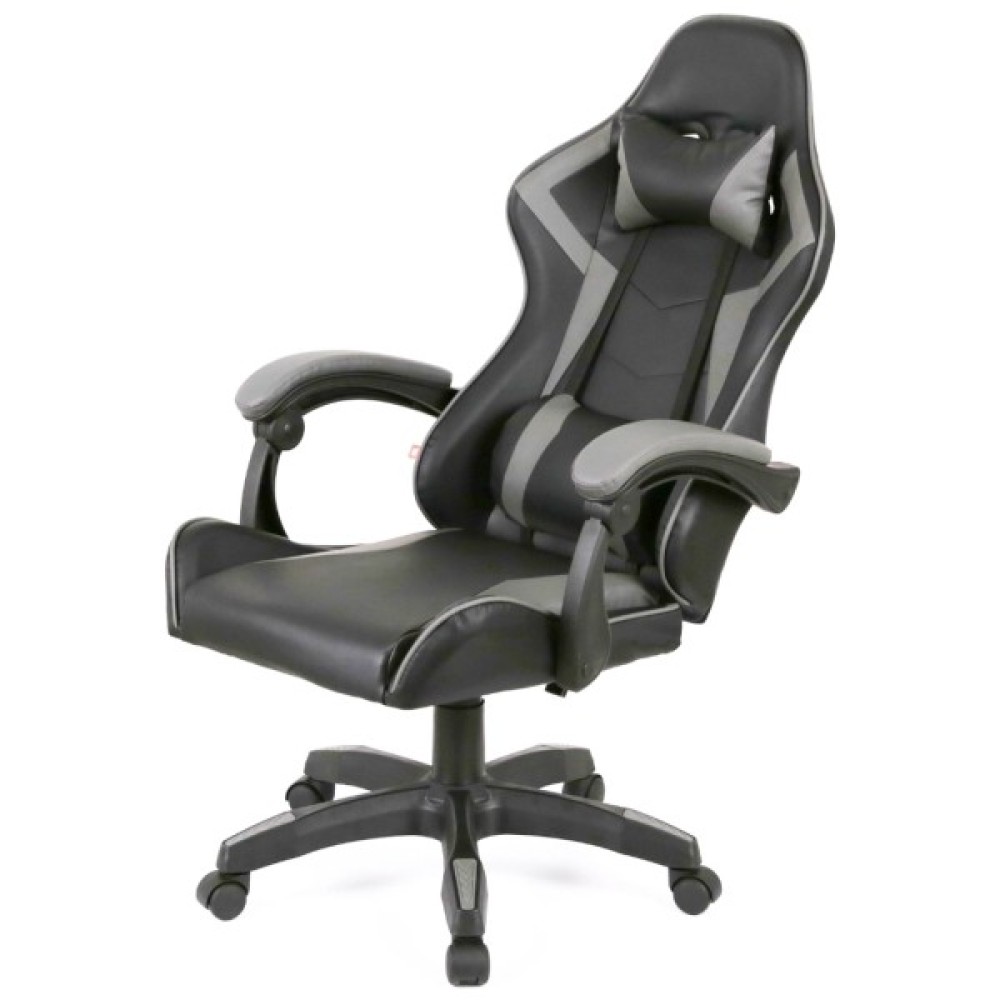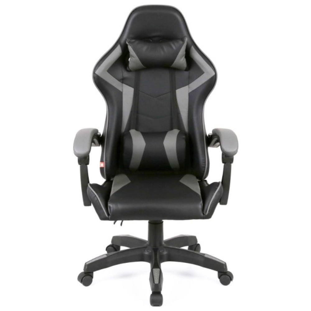 Дизайн крісла вражає своєю спортивністю та динамічністю, завдяки вдалому поєднанню чорного та сірого кольорів, які підкреслюють геймерську атмосферу. Ергономічна форма спинки з бічною підтримкою гарантує комфорт протягом тривалих годин за комп'ютером. Крісло включає додаткові подушки для підтримки шиї та попереку, що суттєво поліпшує сидіння й підтримує природне положення тіла, зменшуючи навантаження на хребет.