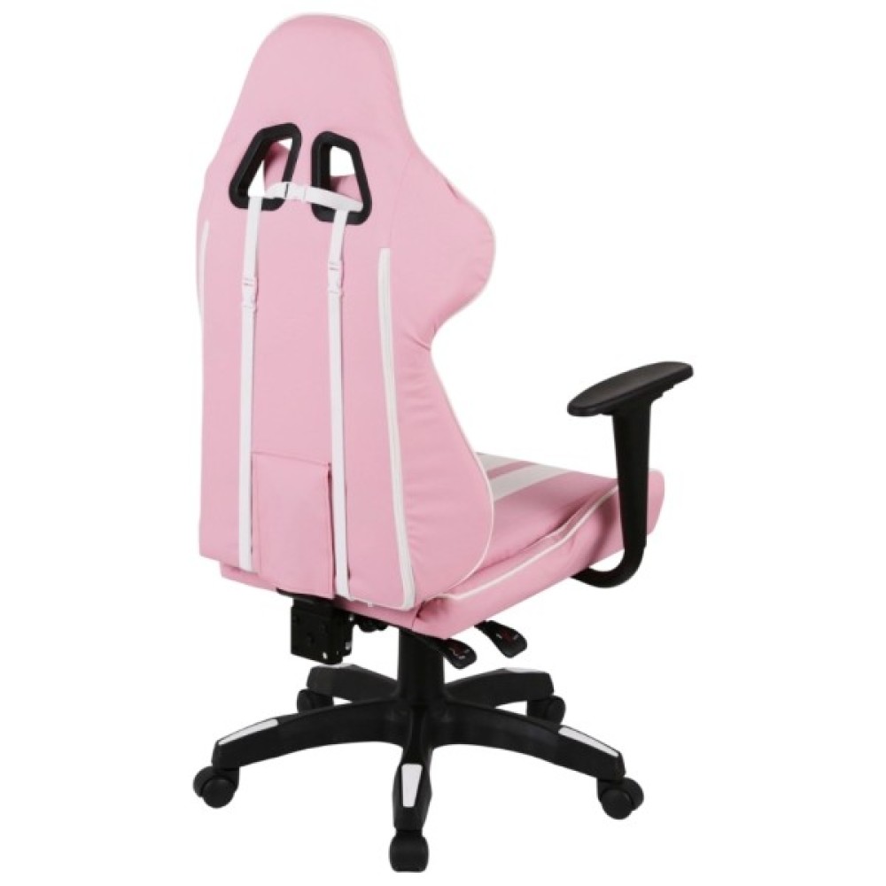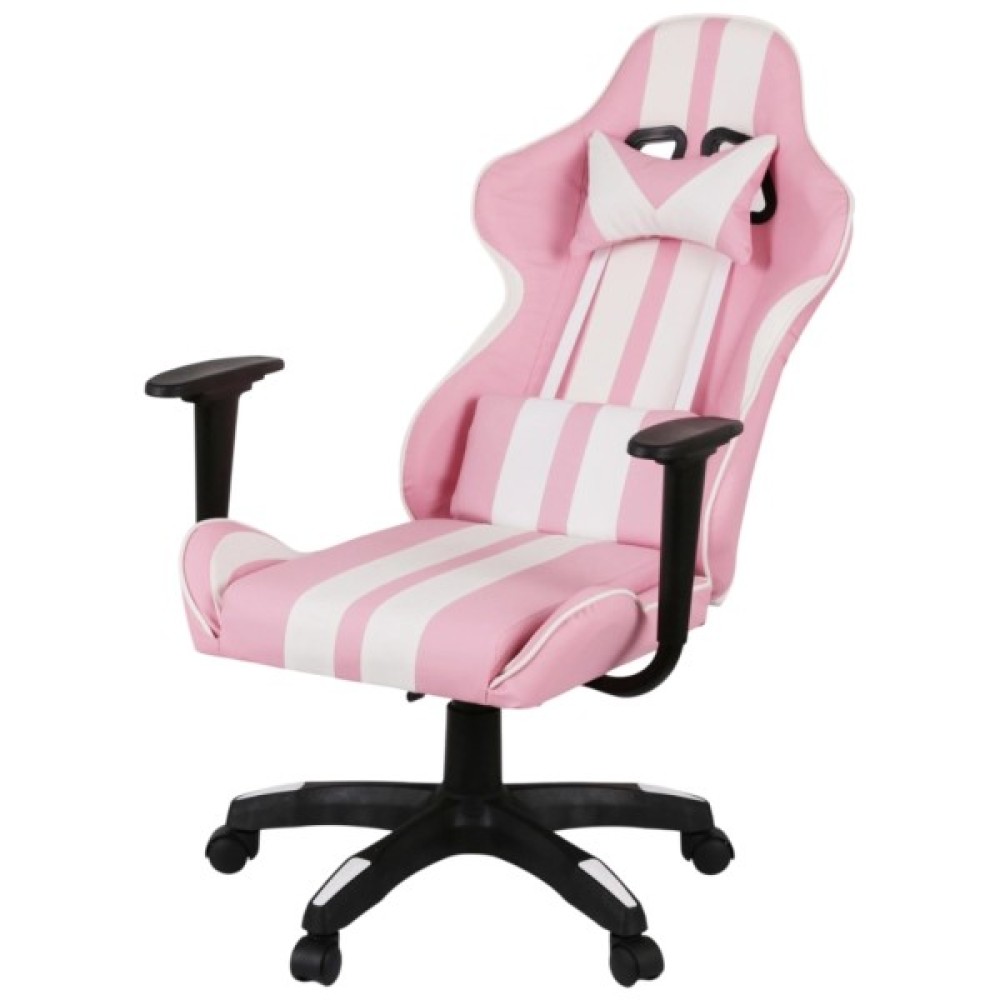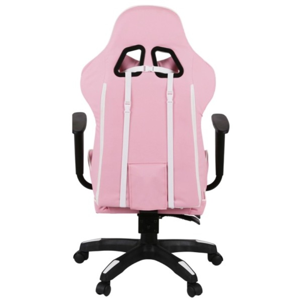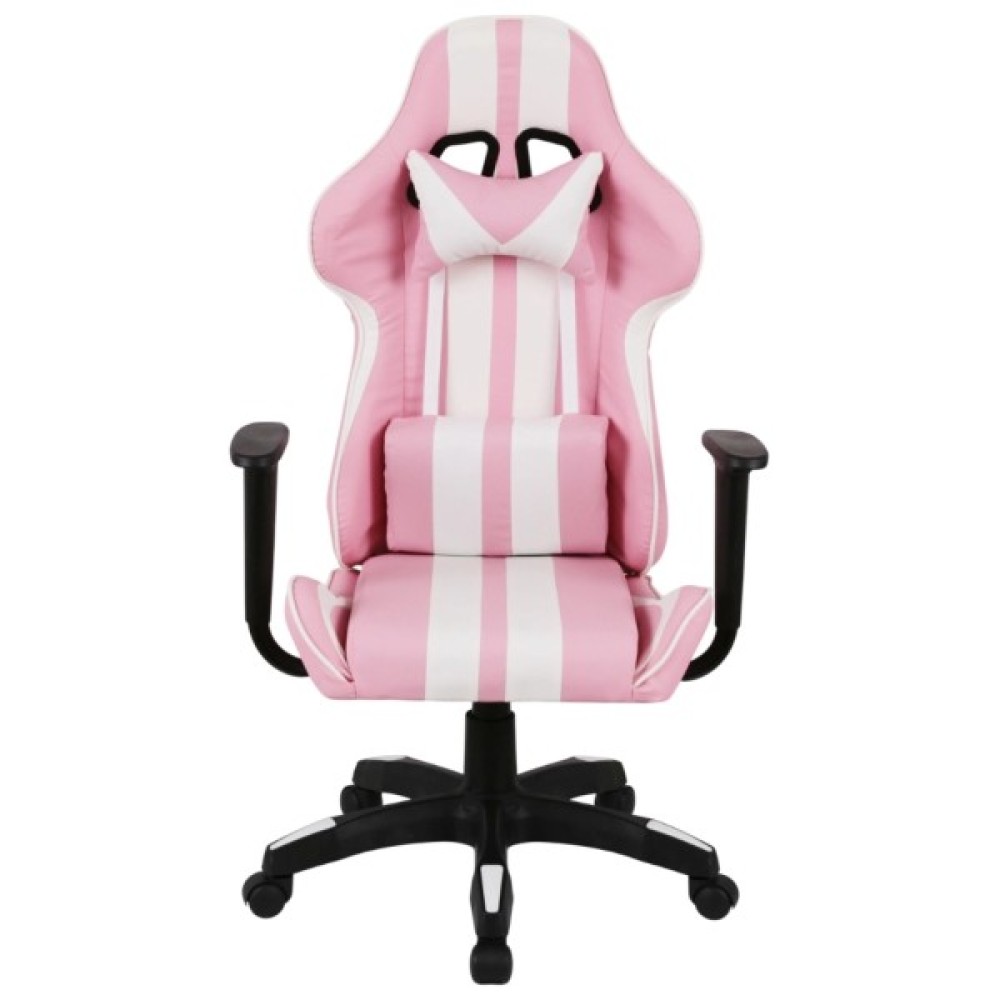 Стильний дизайн крісла з динамічним поєднанням рожевого та білого кольорів надає йому яскравості та оригінальності. Ергономічна форма спинки з боковою підтримкою додає комфорт під час тривалого сидіння, забезпечуючи здорову посадку. Додаткові подушки для попереку та шиї знижують навантаження на тіло, сприяючи гарному самопочуттю навіть після кількох годин.