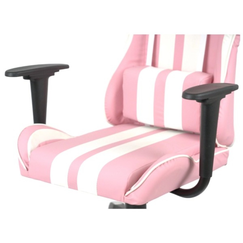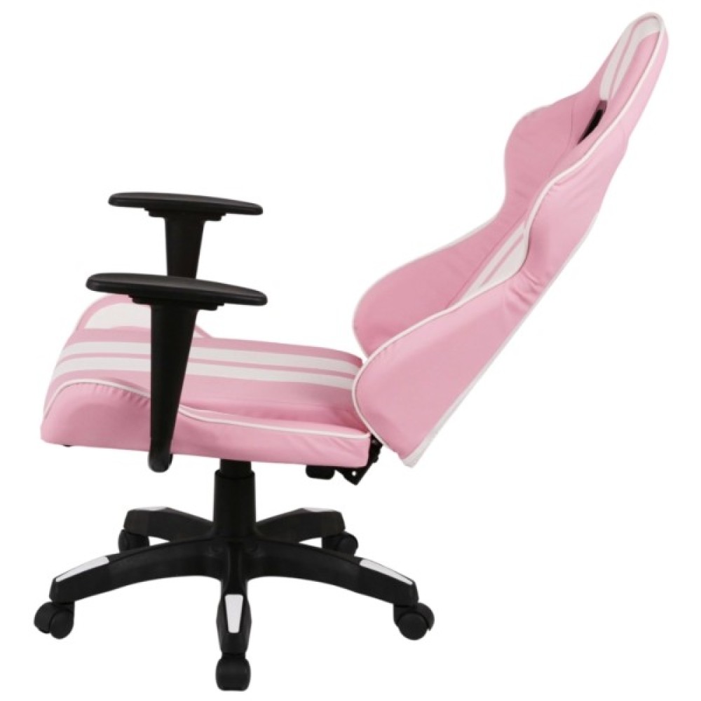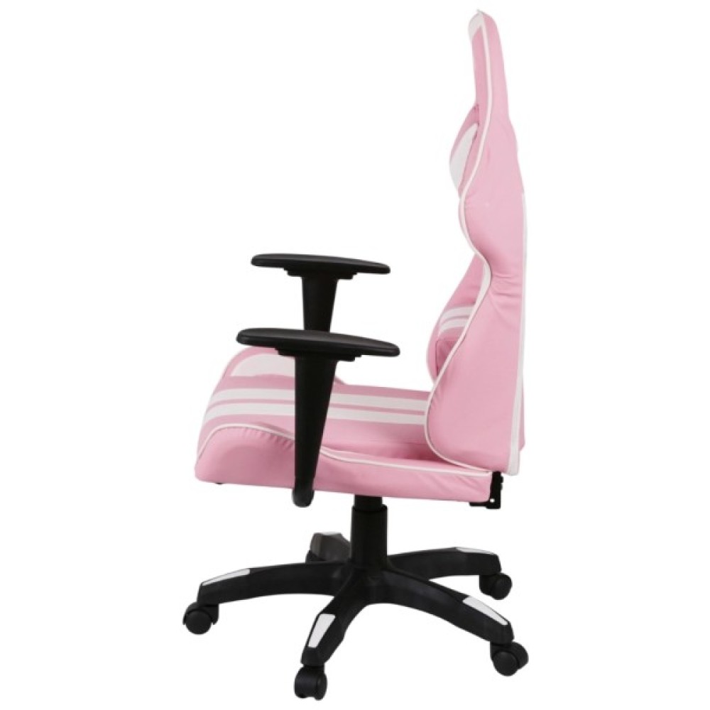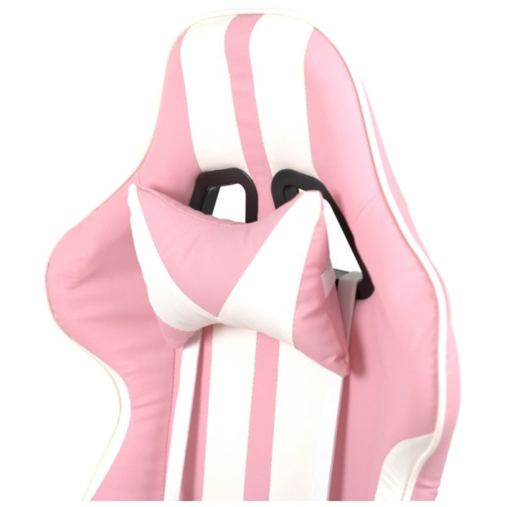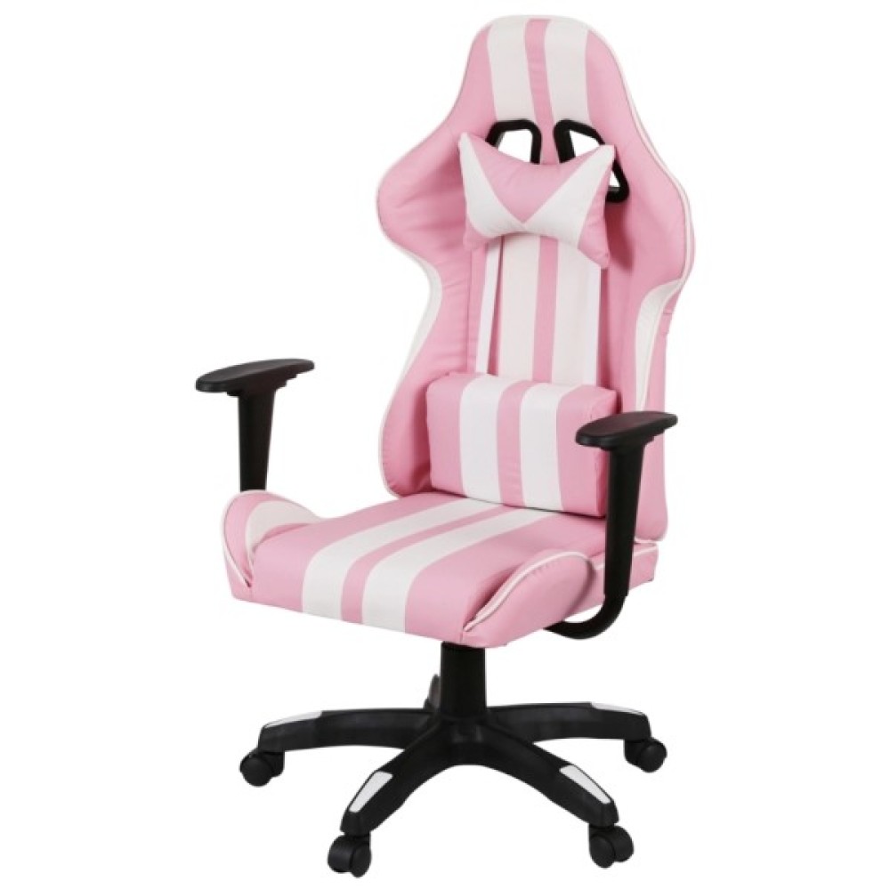 Стильний дизайн крісла з динамічним поєднанням рожевого та білого кольорів надає йому яскравості та оригінальності. Ергономічна форма спинки з боковою підтримкою додає комфорт під час тривалого сидіння, забезпечуючи здорову посадку. Додаткові подушки для попереку та шиї знижують навантаження на тіло, сприяючи гарному самопочуттю навіть після кількох годин.