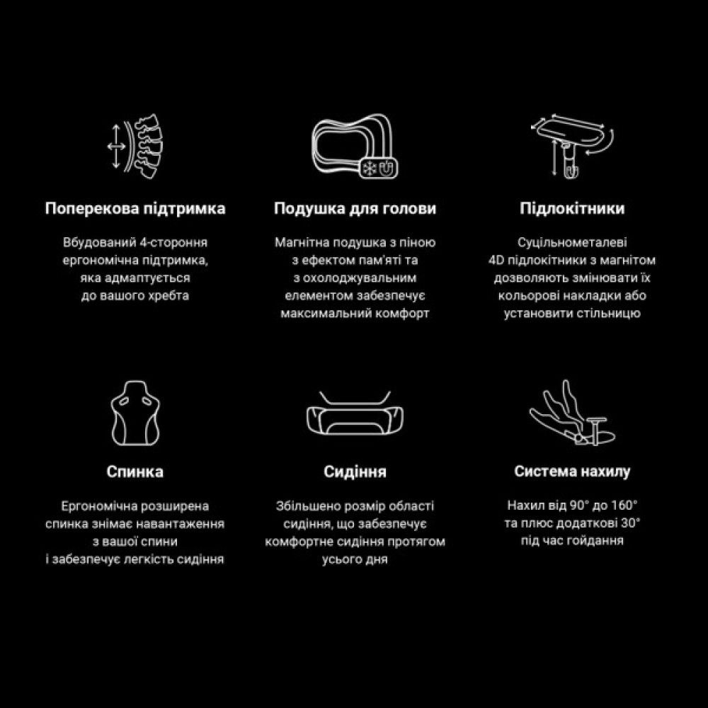 Окремо варто виділити регульовані підлокітники, які мають 4D технологію MagSwap. Це дозволяє налаштовувати підлокітники у чотирьох напрямках з можливістю змінювати верхні покриття, що додає додаткового стилю та зручності використанню. Ергономічна підтримка вашого зап'ястя та ліктя забезпечує рівномірний розподіл ваги, що значно знижує втому під час тривалих сесій гри або роботи.