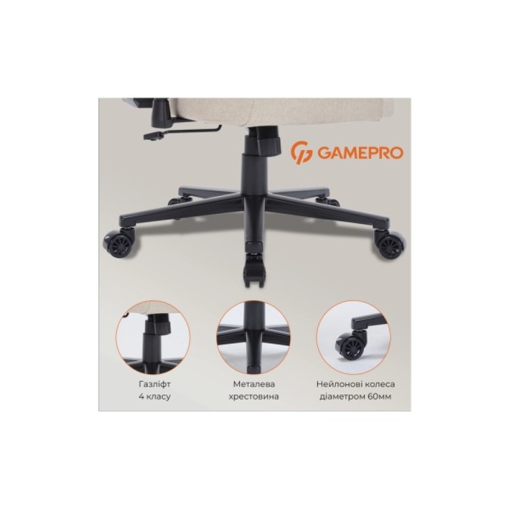 Крісло ігрове GamePro FGC750G Size L Fabric Beige (FGC750G) – це ідеальне рішення для справжніх поціновувачів комфортного й захоплюючого ігрового процесу. Виготовлене з високоякісних матеріалів, воно поєднує в собі стильний дизайн і передові технології, що подарують вам неперевершене відчуття зручності та підтримки під час тривалих сесій. Металевий каркас товщиною 1.5 мм забезпечує стабільність та надійність, витримуючи максимальне навантаження до 120 кг. Це робить його відмінним вибором для користувачів зі зростом до 190 см, які цінують довговічність і безпеку.