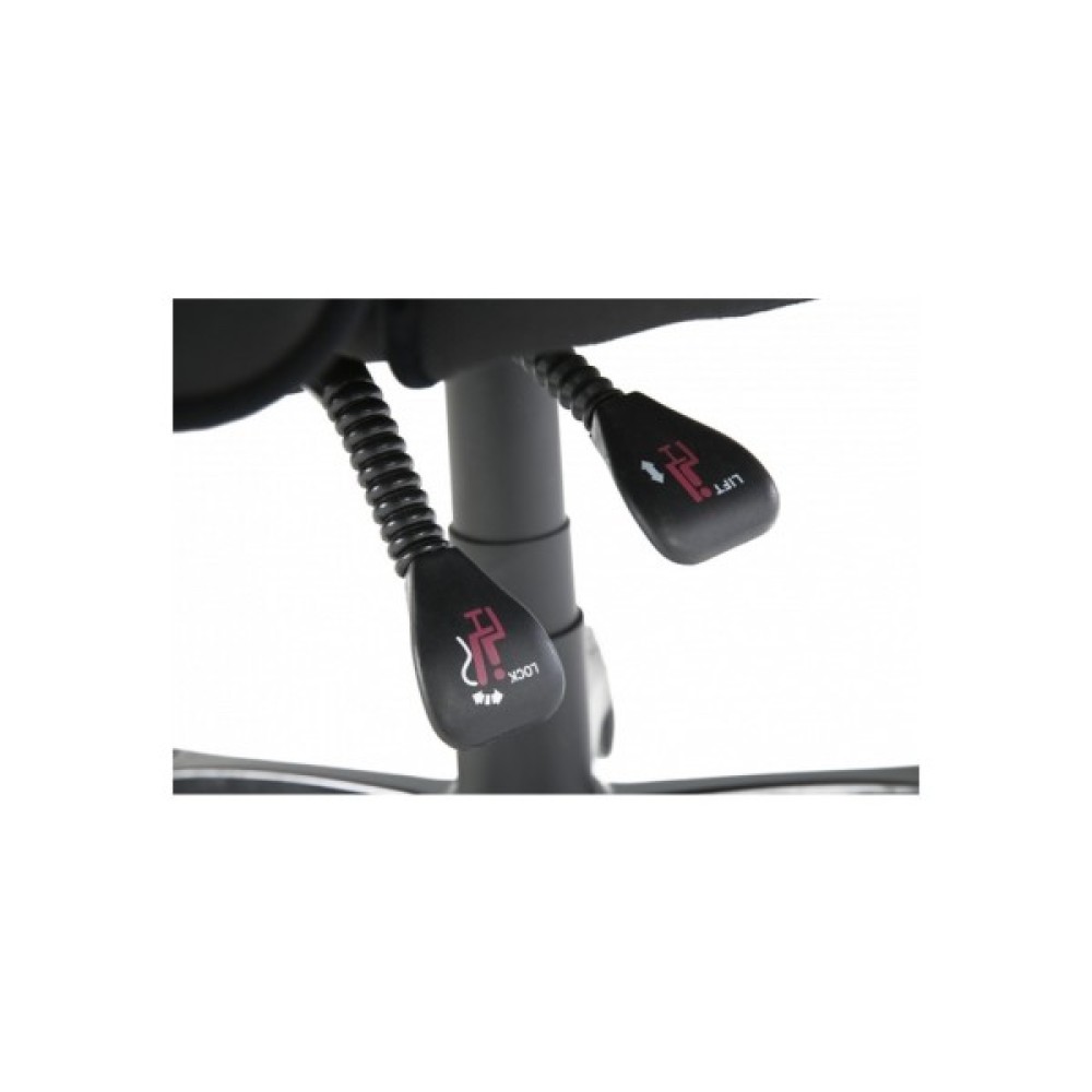 Ергономічність цієї моделі виражається також у наявності підлокітників з високоміцного пластику, оздоблених м'якими накладками. Це дозволяє правильно розмістити руки незалежно від положення тіла, знижуючи навантаження на плечі та запобігаючи втомі.