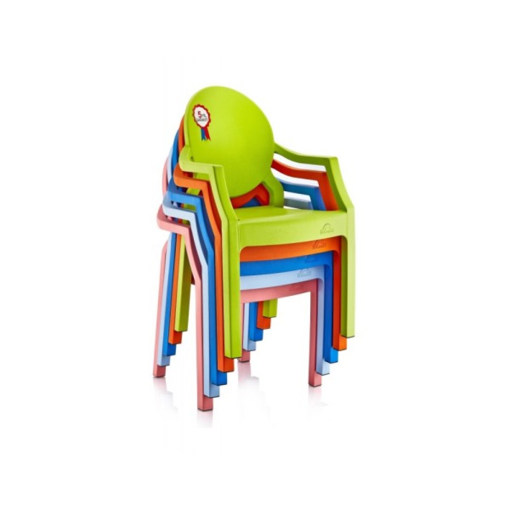 Вироби легко штабелюються, допустиме навантаження на крісло - до 120 кг. Рекомендується до використання дітьми від 3 до 10 років. Висота від підлоги до сидіння - 32 см.