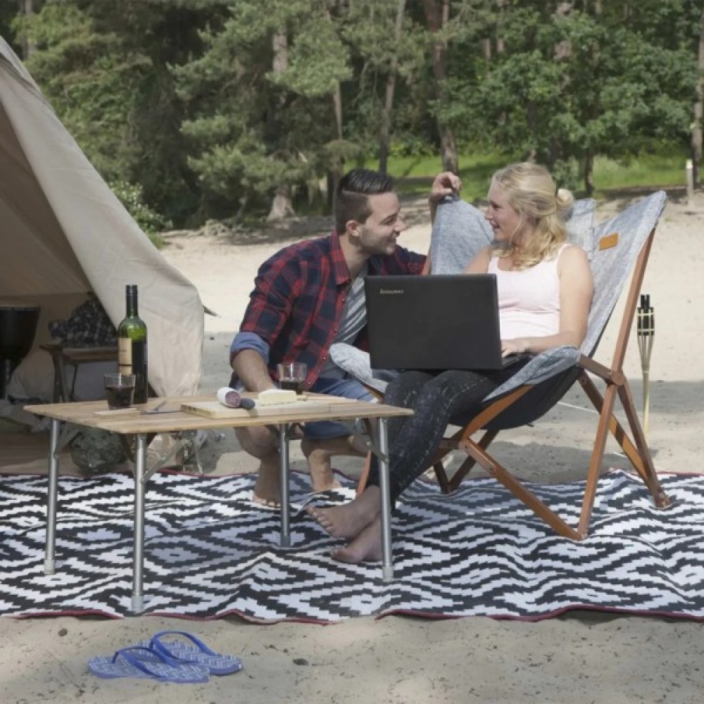 Дерев'яний каркас крісла дуже легкий та швидко, без зусиль розкладається. Він обладнаний пластиковими ніжками, що захищають дерево від вологи і пошкоджень. Крісло досить широке та глибоке для того, щоб забезпечити комфорт користувачам міцної статури. Завдяки елегантному дизайну і якісній приємній на дотик тканині крісло буде чудово виглядати навіть у домашньому інтер'єрі.