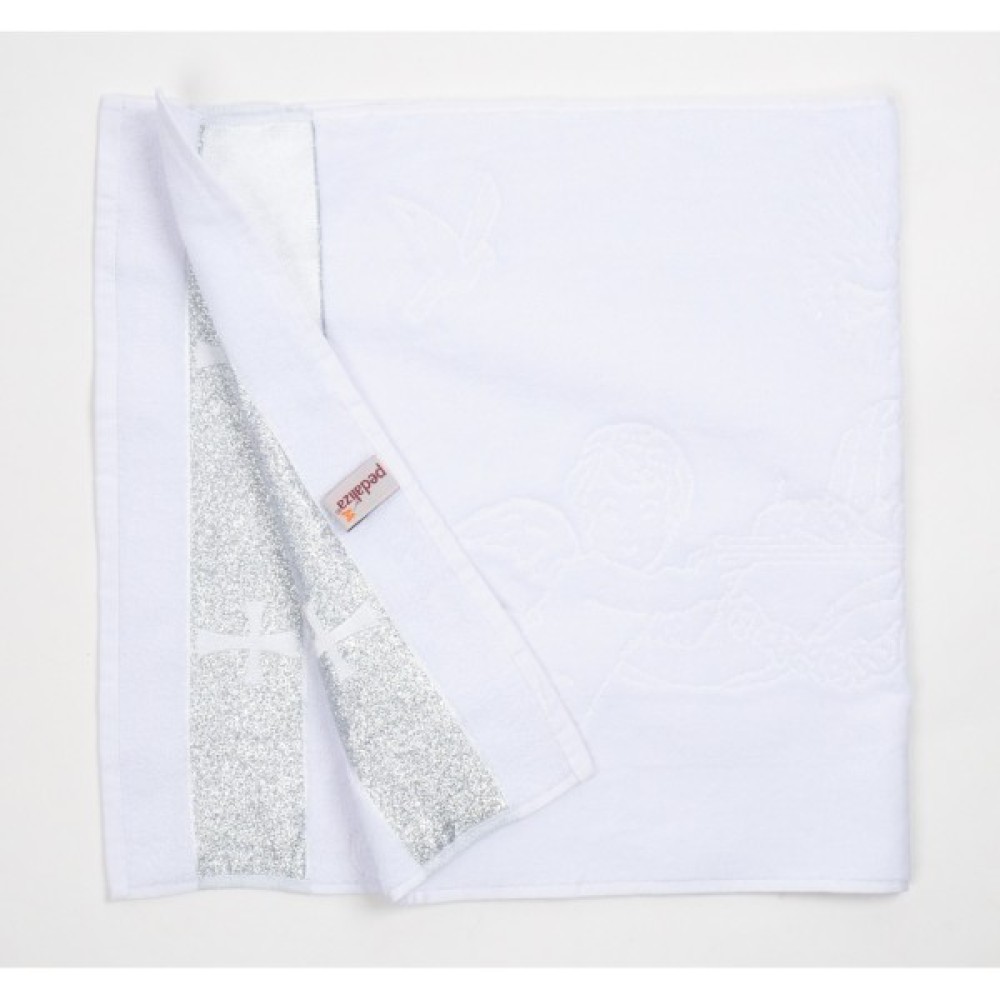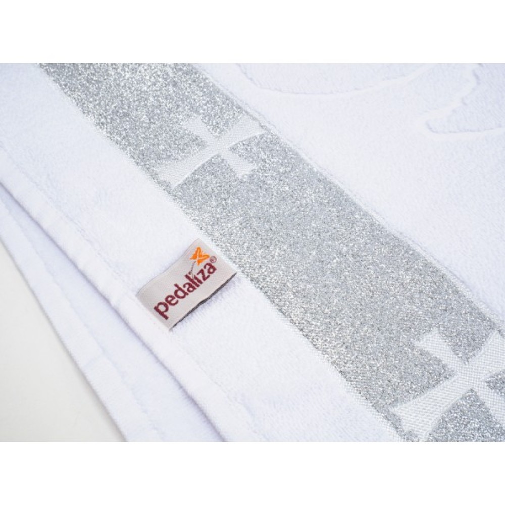 - Красива, біла крижма-рушник для хрещення від турецького виробника «Pedaliza».