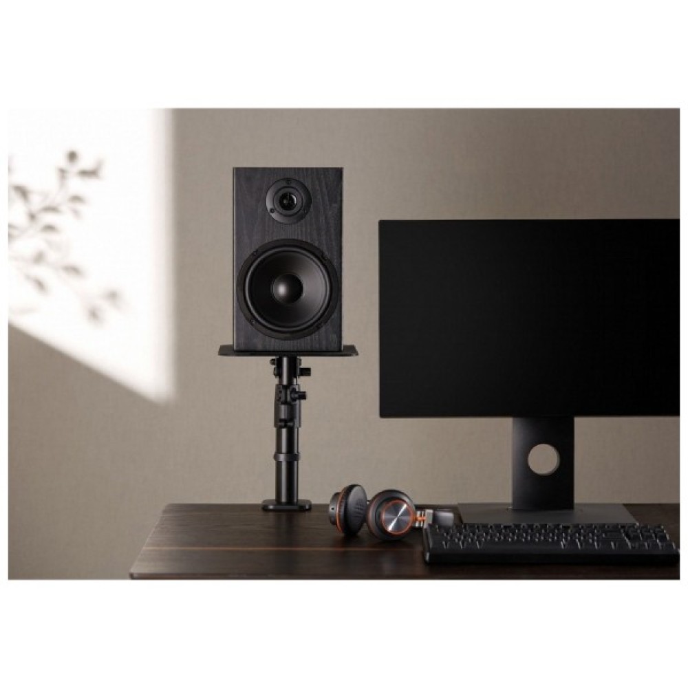 Пара стійки SS138 є ідеальним компаньйоном для поличних динаміків, що дозволяє повністю регулювати оптимальний кут прослуховування та висоту, щоб забезпечити захоплююче, високоякісне музичне враження. Унікальна конструкція верхньої силіконової накладки, що зменшує вібрацію, покращує якість і чистоту звуку, міцно тримаючи динамік. Компактна конструкція основи з кліпсою звільняє та повертає більше місця на робочому столі. А завдяки вбудованій кабельній системі забезпечується та охайне середовище.