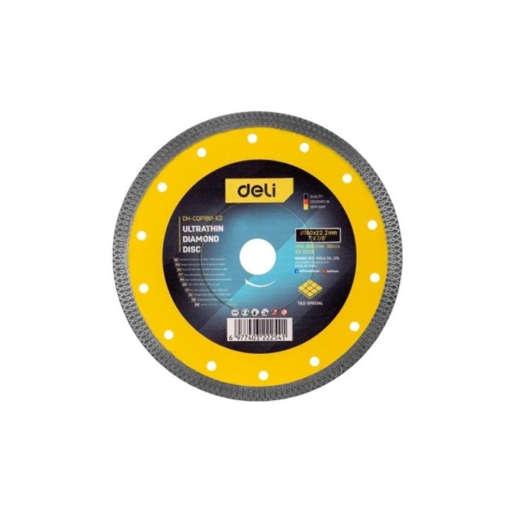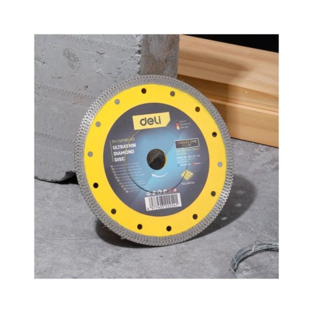 Ультратонкий алмазний диск із фланцевою пластиною — створений для швидкого та чистого різу плитки, каменю й бетону. Розмір 180 мм і посилене ядро зі сталі 75Cr1 забезпечують точність і довговічність. Упакований у подвійний блістер — надійно для викладки.