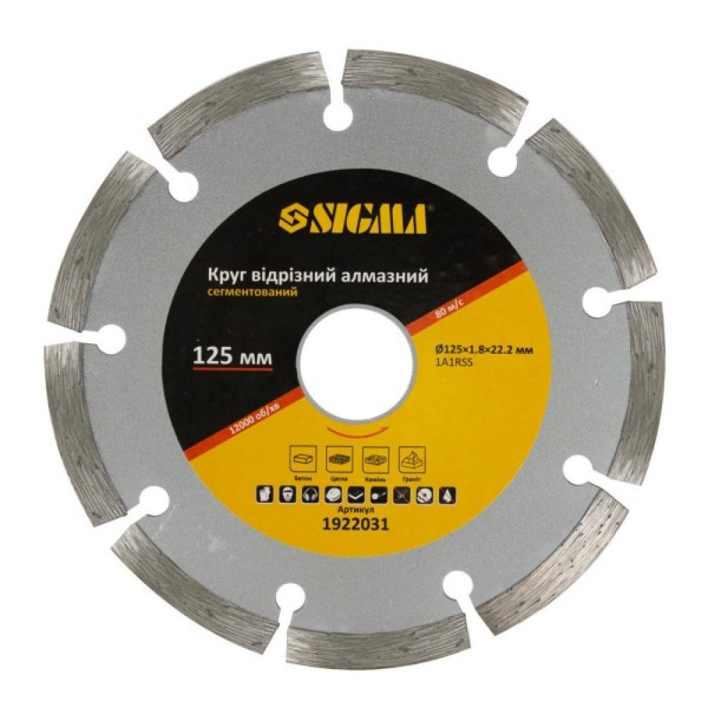 Круг відрізний Sigma алмазний сегментований 125x1.8x22.2мм, 12000об/хв (1922031)