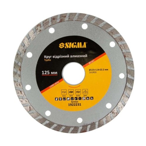 Круг відрізний Sigma алмазний "Турбо" 125x1.8x22.2мм, 12000об/хв (1922231)