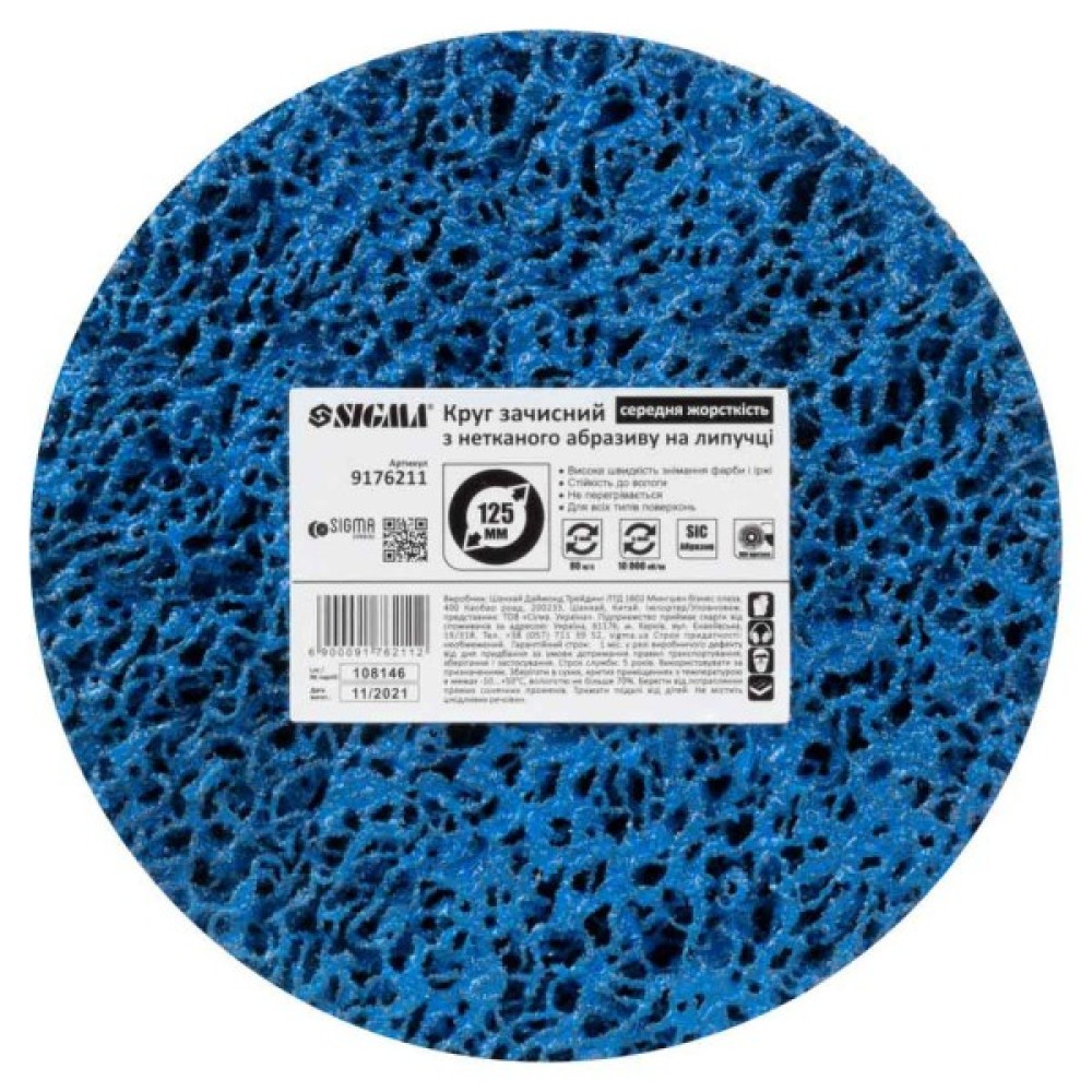 Круг зачистний Sigma з нетканого абразиву (корал) 125мм на липучці синій середня жорсткість (9176211)