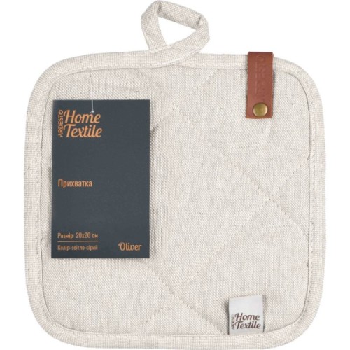 Стильна та практична прихватка кольору шоколад стане незамінним помічником на кухні. Вироблена з якісної 100 % бавовни, має розмір 20 × 20 см, що зумовлює універсальність і зручність використання. Наповнювач із ватину забезпечує захист від опіків. Для збереження первинного вигляду прихватки варто дотримуватися рекомендацій щодо догляду: прати в машині за делікатного режиму (30 °C); не сушити в сушильній машині, а тільки у вертикальному положенні; прасувати за температури до 150 °C; також заборонено відбілювання та хімчистка.