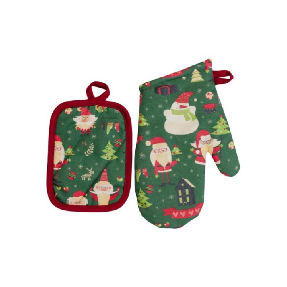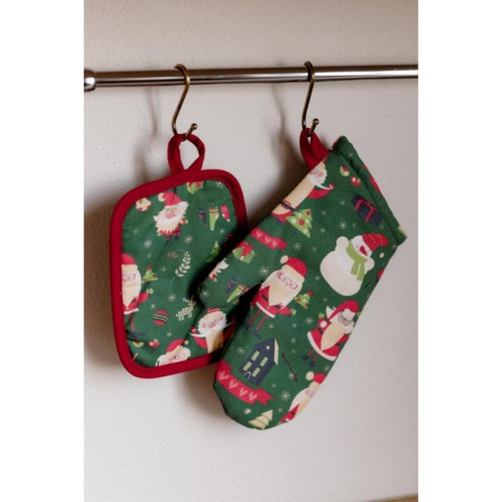 набір рукавичка та прихватка Санта на зеленому
