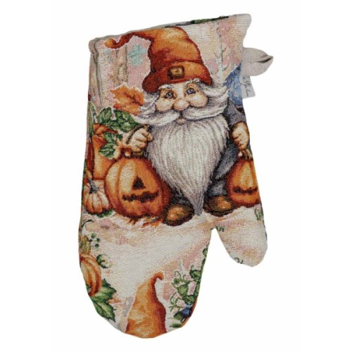 Рукавиця з високоякісної іспанської гобеленової тканини. Це стильний подарунок сім'ї, друзям, родичам та коллегам до свят осені та HALLOWEEN. Мальовничий принт рукавиці допоможе Вам додати затишку та яскравих фарб до настрою та інтер'єру. Розмір: 32х15см Склад тканини: 40% бавовна, 60%поліестер( гобелен ) Замовити гобеленову рукавицю для кухні Гарбузові гноми Додатково пропонуємо замовити кошик, фартух, прихватку, а також скатертину та серветки на стіл з гобеленової колекції Гарбузові гноми.