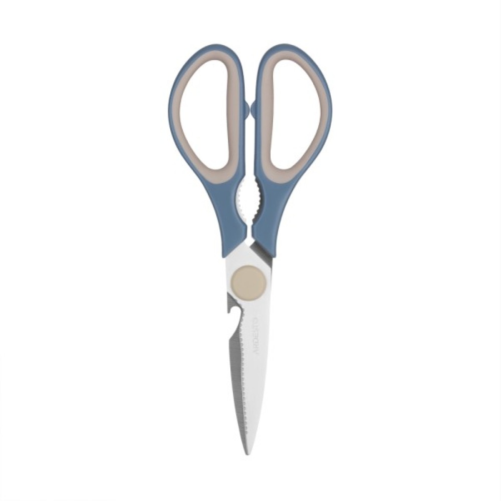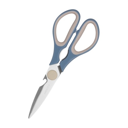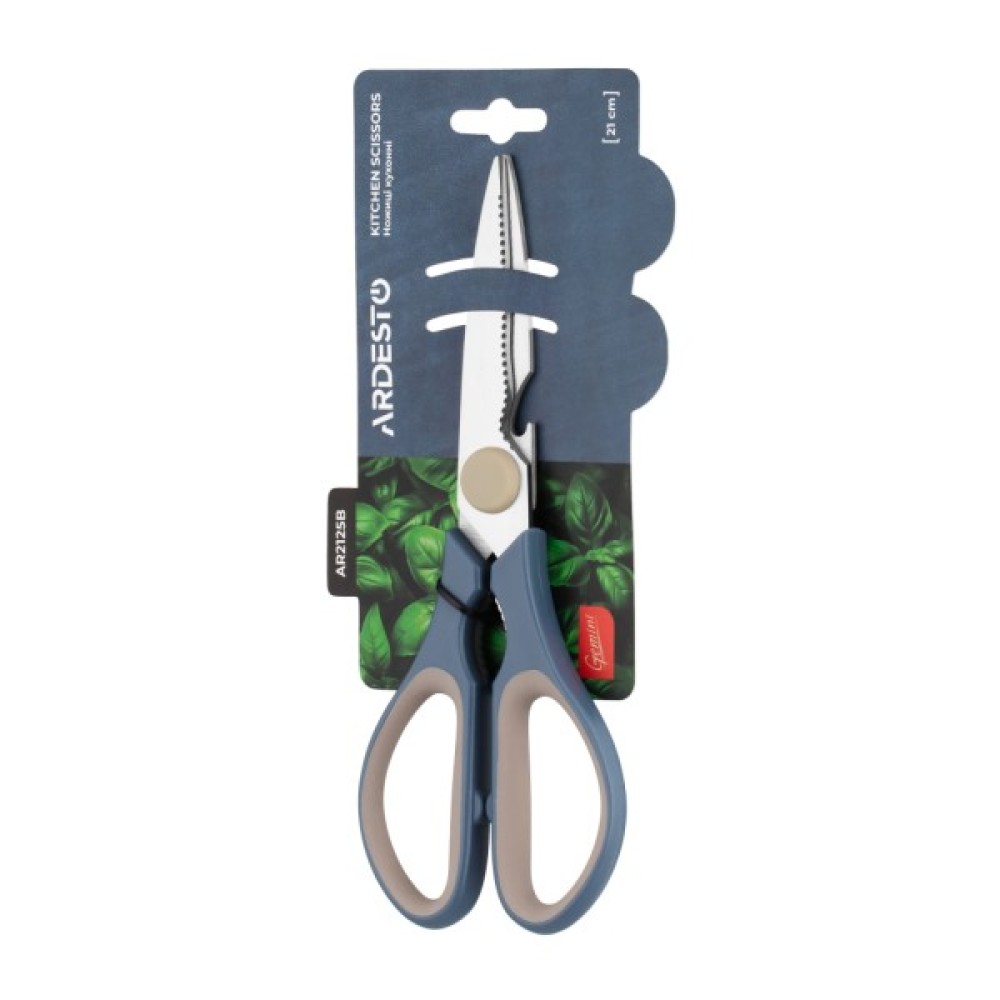 У кухонних ножицях ARDESTO Gemini поєднано функціональність і стильний дизайн. Інструмент виготовлено з нержавіючої сталі та пластику, зумовлюючи довговічність і зручність під час використання. Ножиці виготовлено в сіро-блакитному кольорі. Завдяки розміру (21 × 8,3 × 1 см) згодяться для щоденного використання. Інструмент можна мити в посудомийній машині, що полегшує догляд.