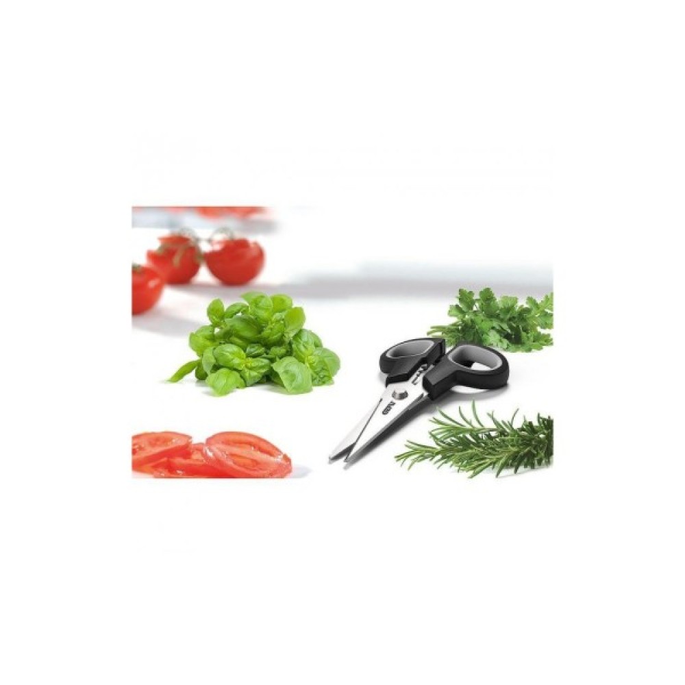 Ножицями Gefu Botanico дуже зручно зрізати листочки свіжої зелені прямо з розсади на підвіконні, не пошкодивши стебло. Компактний розмір ножиць не вимагає багато місця для зберігання. Зручний підвіс на кільцях ножиць BOTANICO дає змогу закріпити їх на горщику для пророщування зелені. Базилік, розмарин, м'ята, цибуля та інша зелень буде завжди під рукою.