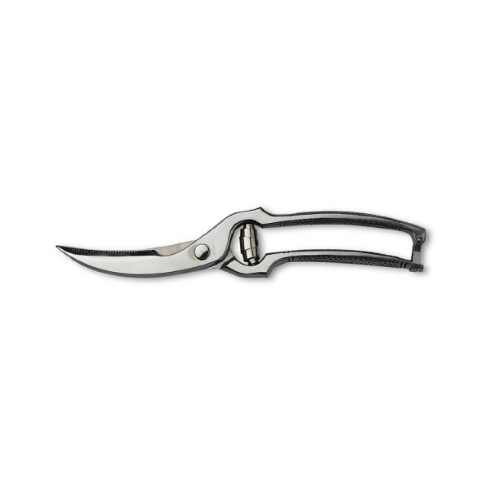 Одна з кількох моделей кухонних ножиць Victorinox, що повністю виготовлені з металу. Єдині з усього модельного ряду мають буферну пружину. З нею досить легкого натискання, жодних значних зусиль докладати не потрібно. Ця маленька особливість значно спрощує роботу при обробці різноманітних птахів. Відрізняються максимально простою, але продуманою та дуже зручною конструкцією. Мають можливість заміни спіральної пружини.