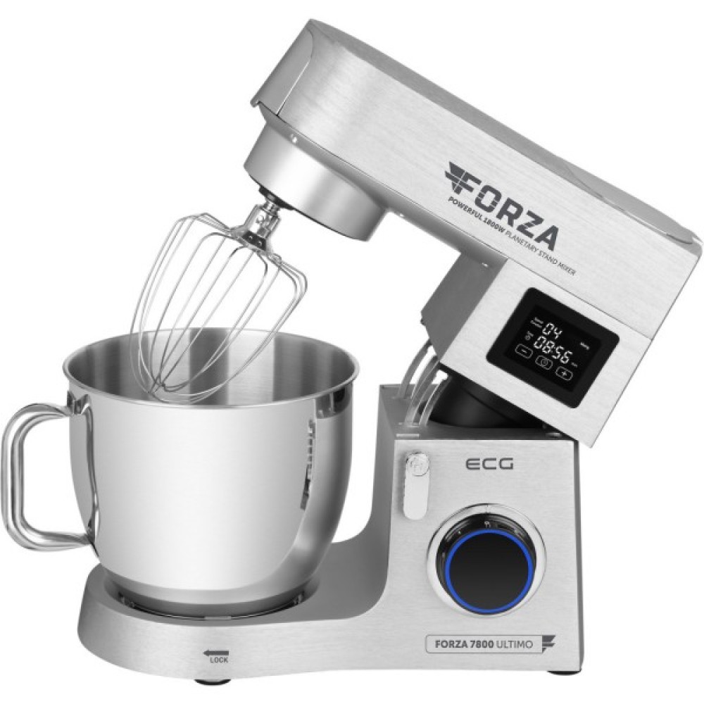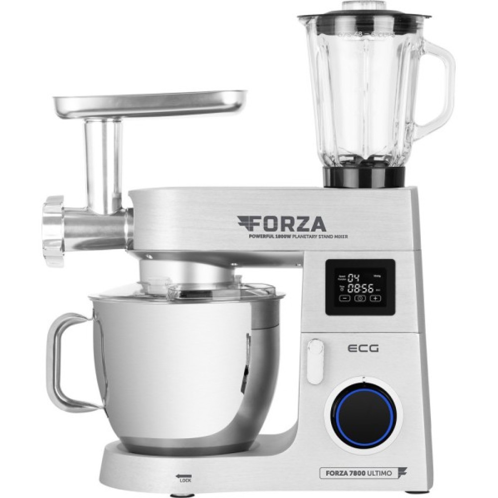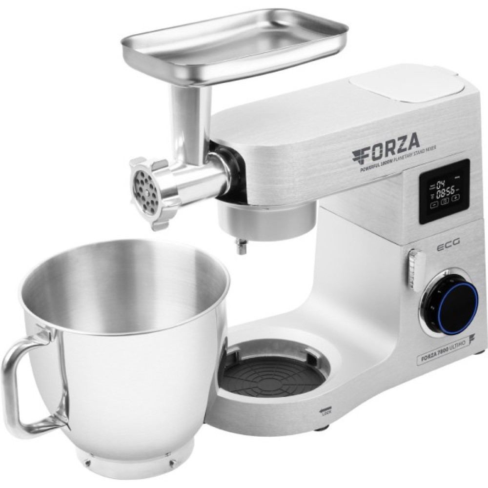 Універсальний кухонний комбайн ECG FORZA 7800 Ultimo Argento виконає практично всі основні завдання при підготовці продуктів. Заміс усіх видів тіста, збивання ніжних кремів і соусів, подрібнення продуктів — все це відбувається в автоматичному режимі, швидко і якісно. Робочі елементи з неіржавкої сталі стійкі до зношування і підходять для миття в посудомийній машині. Прогумовані ніжки виключають вібрацію або пересування приладу по столу в процесі роботи.