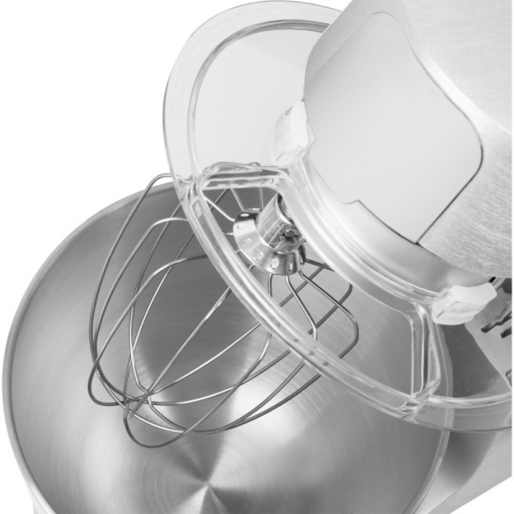 Стаціонарний міксер передбачає чашу на 8 л. Робочого об'єму достатньо для приготування до 4,5 кг тугого тіста або крему, а також шинкування і нарізки овочів на великі порції страв. При цьому габарити чаші дають змогу компактно розмістити її в будь-якому з кошиків посудомийної машини або прибрати для зберігання в кухонну шафку. Для максимальної чистоти і комфорту в роботі чаша обладнана прозорою кришкою з люком дозавантаження продуктів.